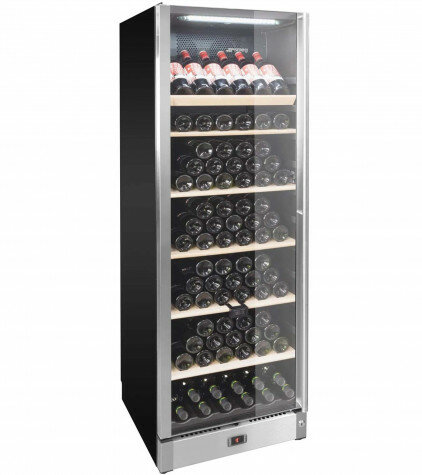 Общие характеристики Тип винного шкафа: климатический Количество камер: одна Система разморозки: автоматическая Цвет: черный, нержавеющая сталь Размеры (ВхШхГ): 185x60x60 см Общий объем: 368 л Управление Управление: электронное Цифровой дисплей Цифровой термометр Режим работы Годовое потребление энергии: 168 кВтч/год Уровень шума: 42 дБ Климатический класс: SN