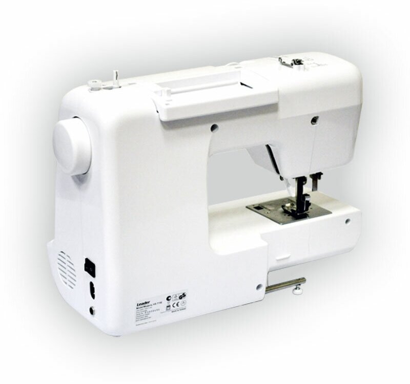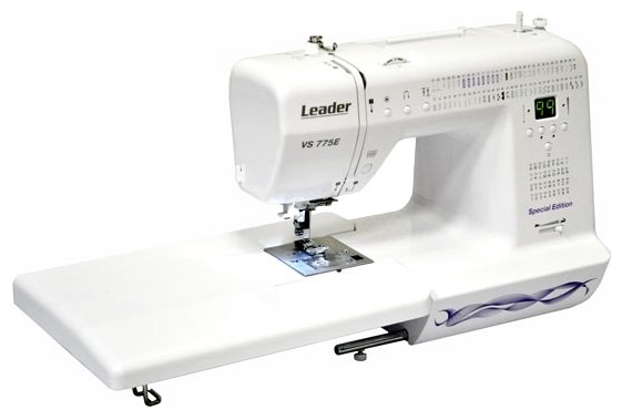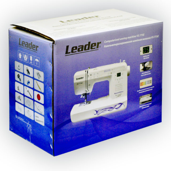 Швейная машина Leader имеет отличительные особенности в виде LED-дисплея, системы шитья без педали, реверса (заднего хода) и закрепки строчки точечного типа. Каркас модели выполнен из прочной стали, обшитой лакированным износостойким пластиком.