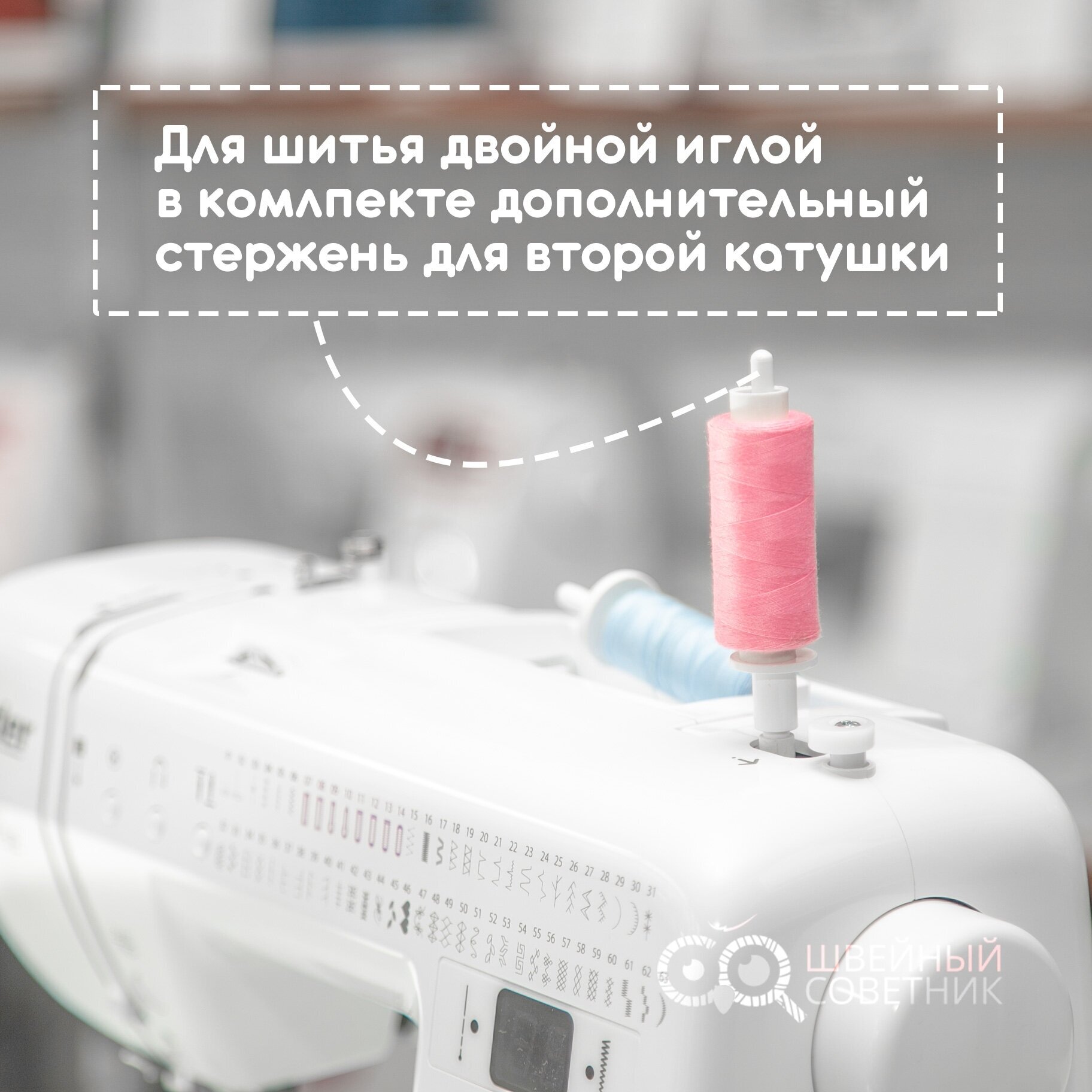В устройстве предусмотрен автоматический нитевдеватель, поэтому нитку не придется заправлять вручную. Для продвижения ткани имеется многосегментная рейка, самостоятельная настройка прижима лапки, а также стабилизатор силы прокола, что в совокупности с горизонтальным челноком обеспечивает идеальную строчку. Технические характеристики: