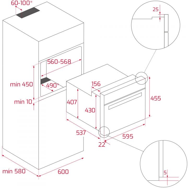 Габариты ниши для встраивания: 45x56-56.8x58 см