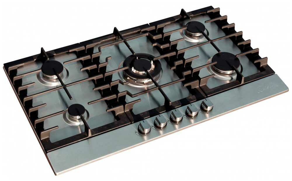 | Описание конфорок | 1 х 13 см Турбо горелка с Вок адаптером (4,5 кВт). 1 х 9 см большая горелка (3,0 кВт). 2 х 6,5 см нормальная горелка (2,0 кВт). 1 х 4 см экономичная горелка (1,0 кВт). |