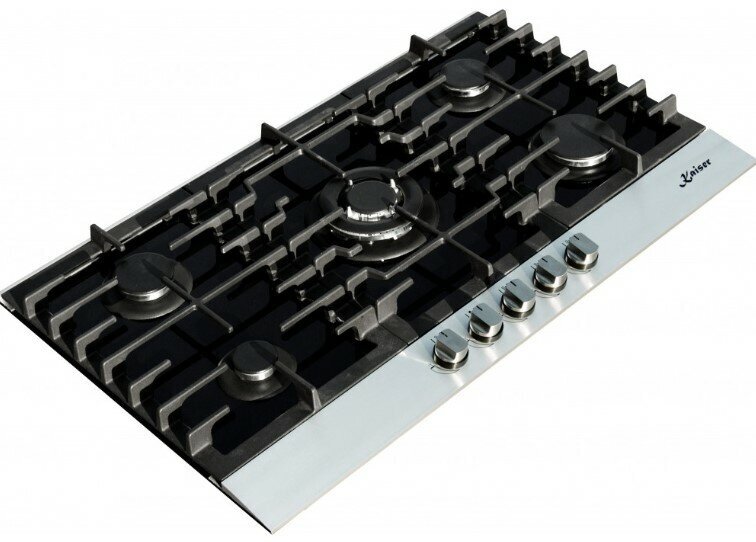 Газовая панель Kaiser профессионального уровня из чёрного закалённого стекла с пятью конфорками и прочными чугунными решётками подчеркнёт превосходный дизайн Вашей кухни. Решётки сконструированы таким образом, что способны выдержать посуду любого размера и веса. Главная особенность плиты - мощная, высокоскоростная турбо-конфорка, с её помощью вода закипает почти моментально - всего несколько секунд и Ваш ароматный чай, или насыщенный кофе готов! Технические характеристики: Ударопрочная поверхность; Чугунные решетки, чугунные крышки конфорок; Элегантные эргономичные металлические ручки управления; Электроподжиг горелок конфорок в поворотной ручке; Газ-контроль конфорок; Бесступенчатая регулировка мощности; Тройная турбо-конфорка скоростного нагрева и увеличенной мощности; Работает с различными видами газа По умолчанию завод настроен на природный газ, а также может работать на сжиженном газе / пропане. Цвет: черное стекло/нержавеющая сталь Габариты (ВхШхГ): 5,5x86x51 см Минимальные размеры для встраивания (ШxГ), см.73X49 Сделано в Германии Гарантия 12 месяцев Конфорки: 1 х ?13,0 см - центральная Турбо-конфорка (4,5 кВт) 1 х ? 9,0 см - большая горелка (3,0 кВт), 2 х ? 6,5 см - стандартная горелка (2,0 кВт), 1 х ?4,0 см - экономичная горелка (1,0 кВт) Ключевые особенности: Полный газ-контроль- гарантия Вашей безопасности. Если в Ваше отсутствие на кухне сквозняк погасил огонь, или выкипело блюдо, залив конфорку, то подача газа будет остановлена автоматически. Электроподжиг конфорок. Забудьте о спичках и зажигалках. Просто нажмите и поверните ручку – конфорка уже загорелась сама Решётки поверхности сделаны из чугуна. Решётки рабочей поверхности выполнены из литого чугуна, их конструкция позволяет использовать посуду любых размеров и не беспокоится что они сдвинутся. Массивные чугунные решётки, легко моются в посудомоечной машине. Металлические ручки управления. Элегантные и удобные ручки управления выполнены из металла, что гарантирует Вам долгий срок службы и безупречный внешний вид на весь срок эксплуатации. Турбо конфорка повышенной мощности. ?13,0 см. - Турбо-конфорка (3,8 кВт) – увеличенная мощность и скоростной нагрев, позволяет значительно сократить время приготовления блюд. Любителям азиатской кухни понравится оригинальная вок-подставка из чугуна которая идет в комплекте. Срок службы (эксплуатации) 10 лет.