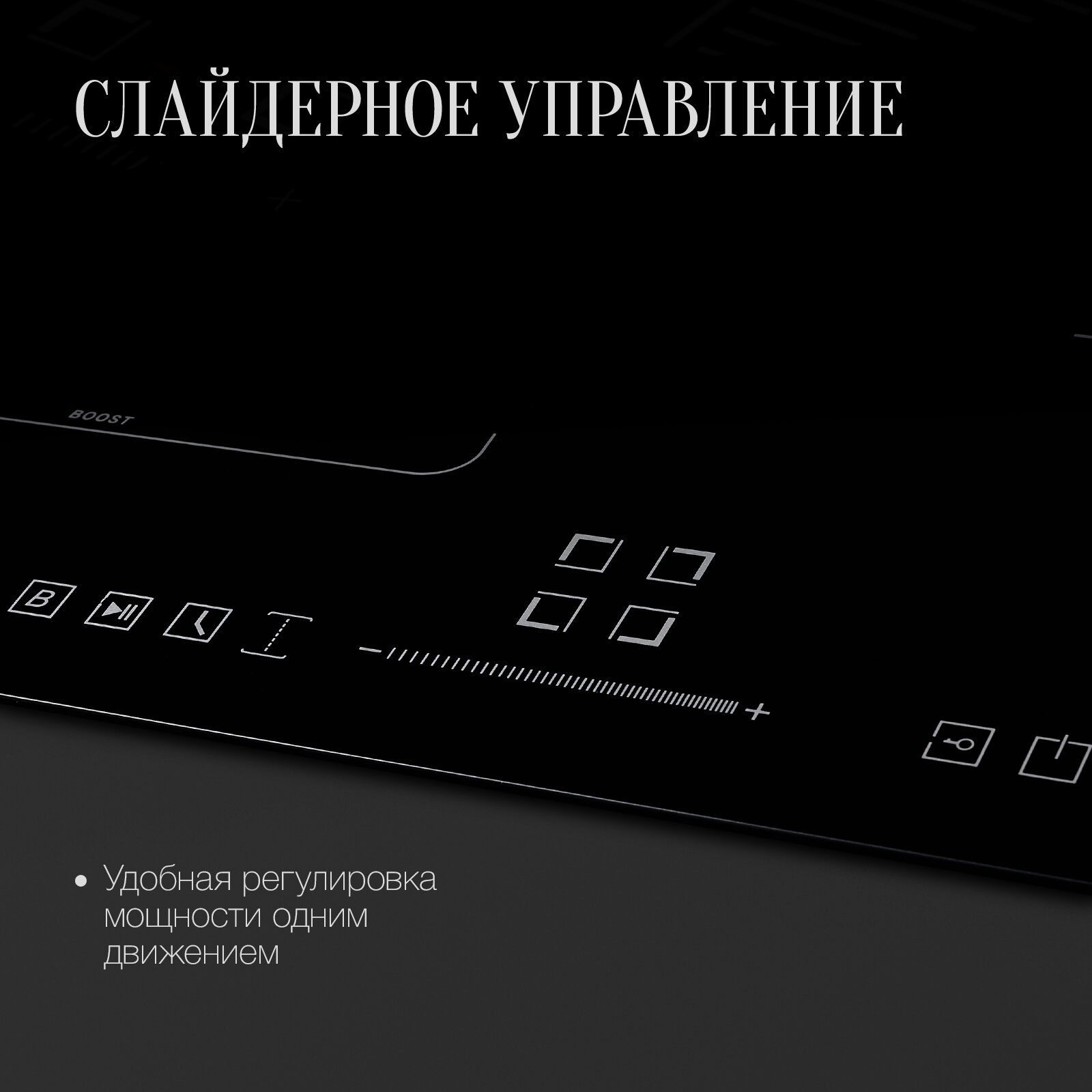 Индукционная варочная панель из стеклокерамики отличается стильным видом и впечатляющей функциональностью. Каждый владелец такой техники непременно оценит ряд важных качеств: 4 конфорки, дополненные функцией Booster, что приводит к моментальному нагреву плиты; режим Flexi-Zone, позволяющий раздвигать границы конфорок; слайдер позволит одним пальцем настроить нужную программу; девять уровней производительности; 5 дисплеев; «Stop and Go» – режим немедленной остановки и последующего возобновления работы; блокирование панели; автоматическое выключение; электронный таймер; режим остаточного тепла. Остановите свой выбор на встраиваемой варочной поверхности . Это качественный прибор, разработанный согласно новейшим методикам.