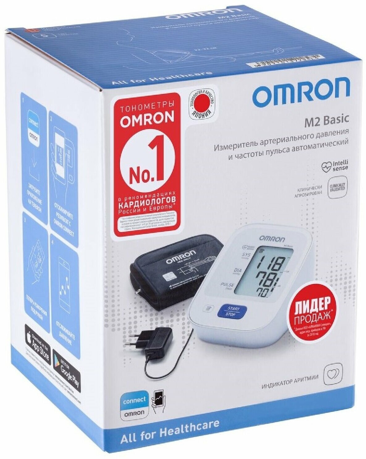 - Тонометр Omron M2 Basic + адаптер + универсальная манжета