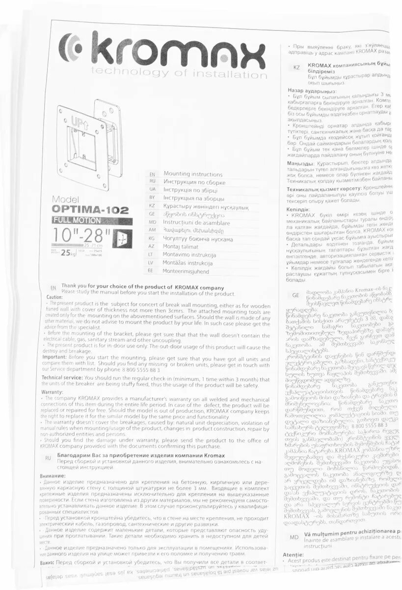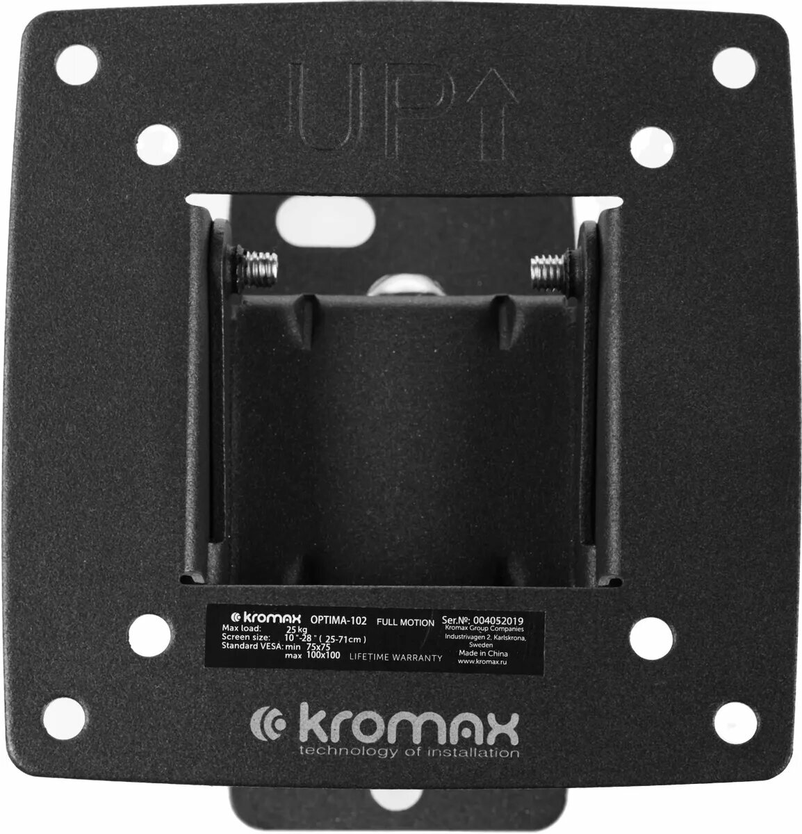 Кронштейн Kromax Optima-102 черный 10"-28" настенный от стены 68.5мм наклон +5°/-12° VESA 100х100мм до 25кг