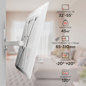 Кронштейн для телевизора Holder LCD-5520-B белый 32"-55" макс.45кг настенный поворотно-выдвижной и н LCD-5520-W