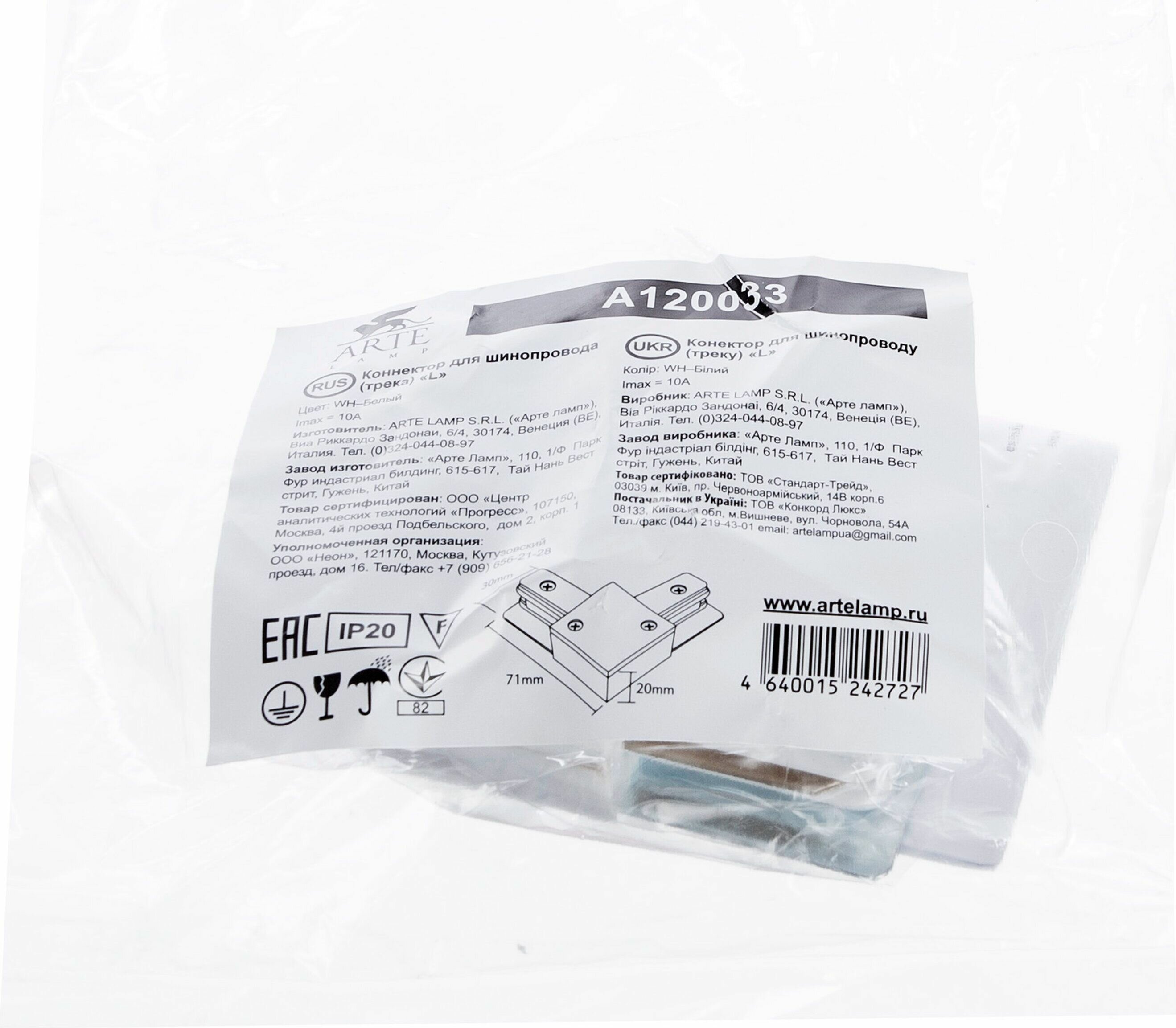 Модель: Соеденитель угловой ARTELAMP белый 7х2х7 см
