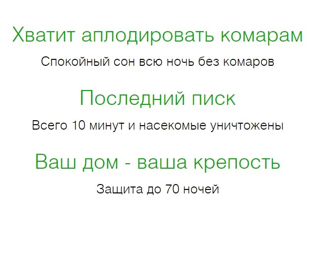 | Применение продукта | Для уничтожения комаров и других летающих насекомых (москитов, мошек) в помещении. Специально разработанная рецептура, без запаха, гарантирует безопасность и эффективность использования. |