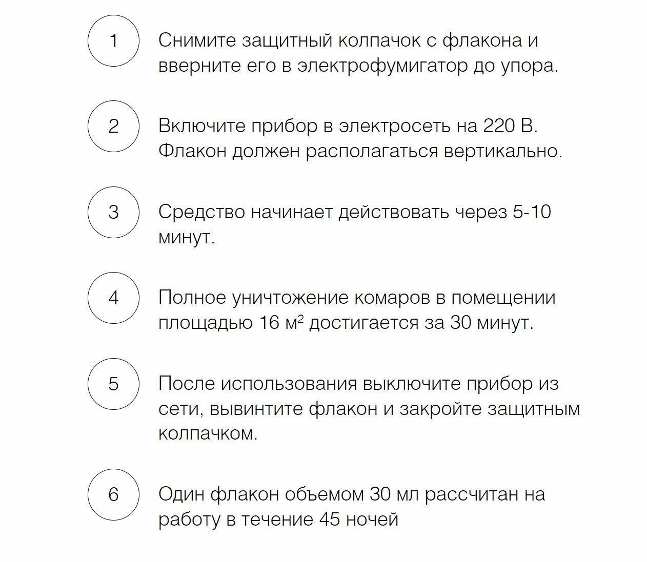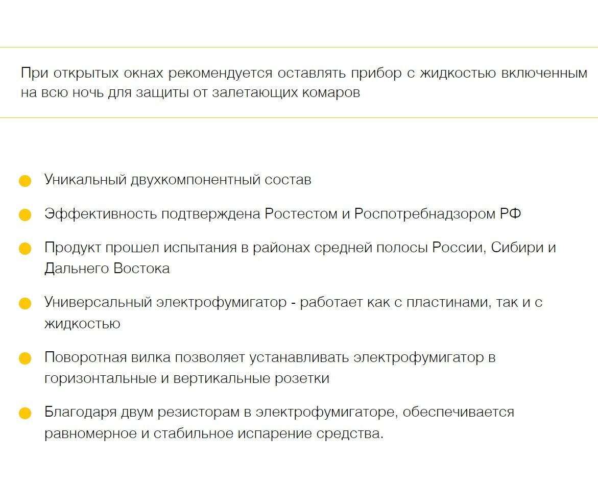 | Время действия жидкости для фумигатора | 45 ночей |