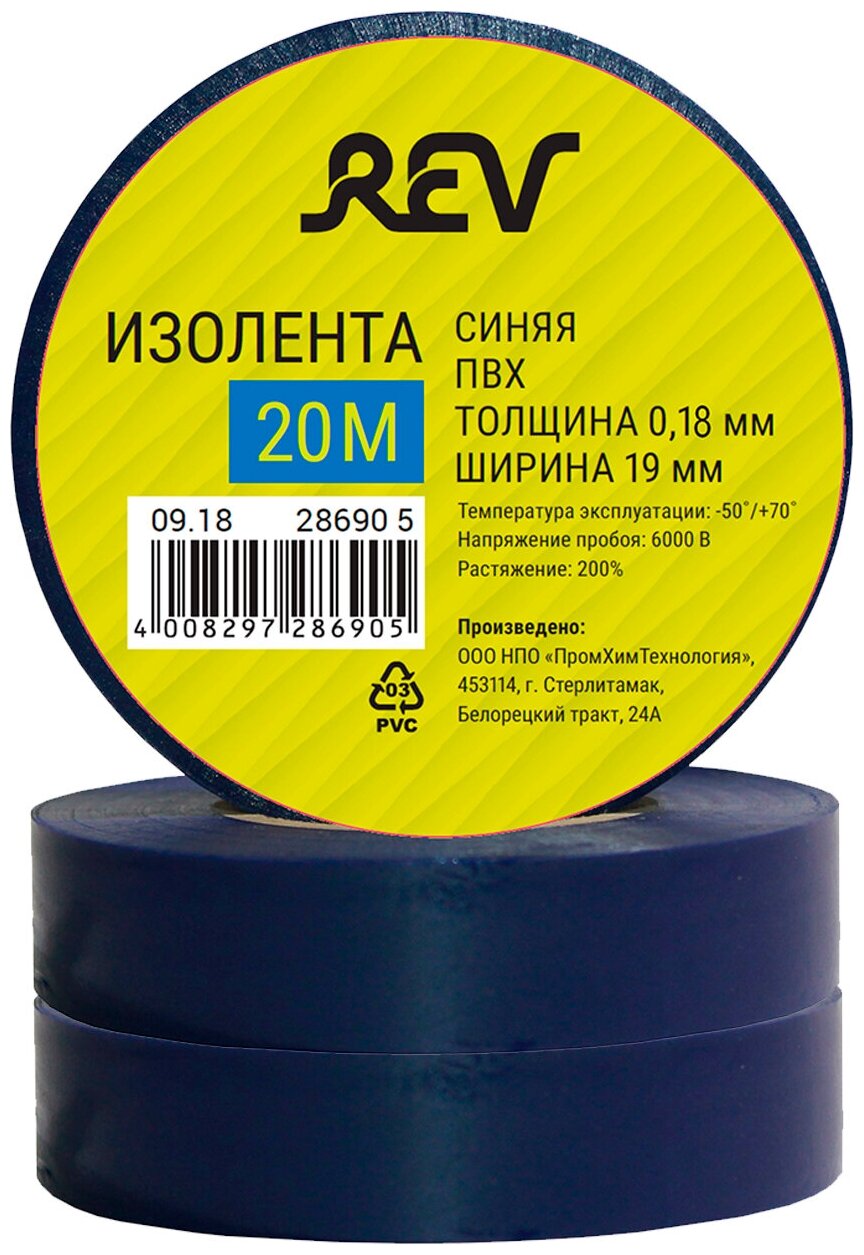 Изоляционные ленты REV Изолента ПВХ REV 20 м синяя 19 мм