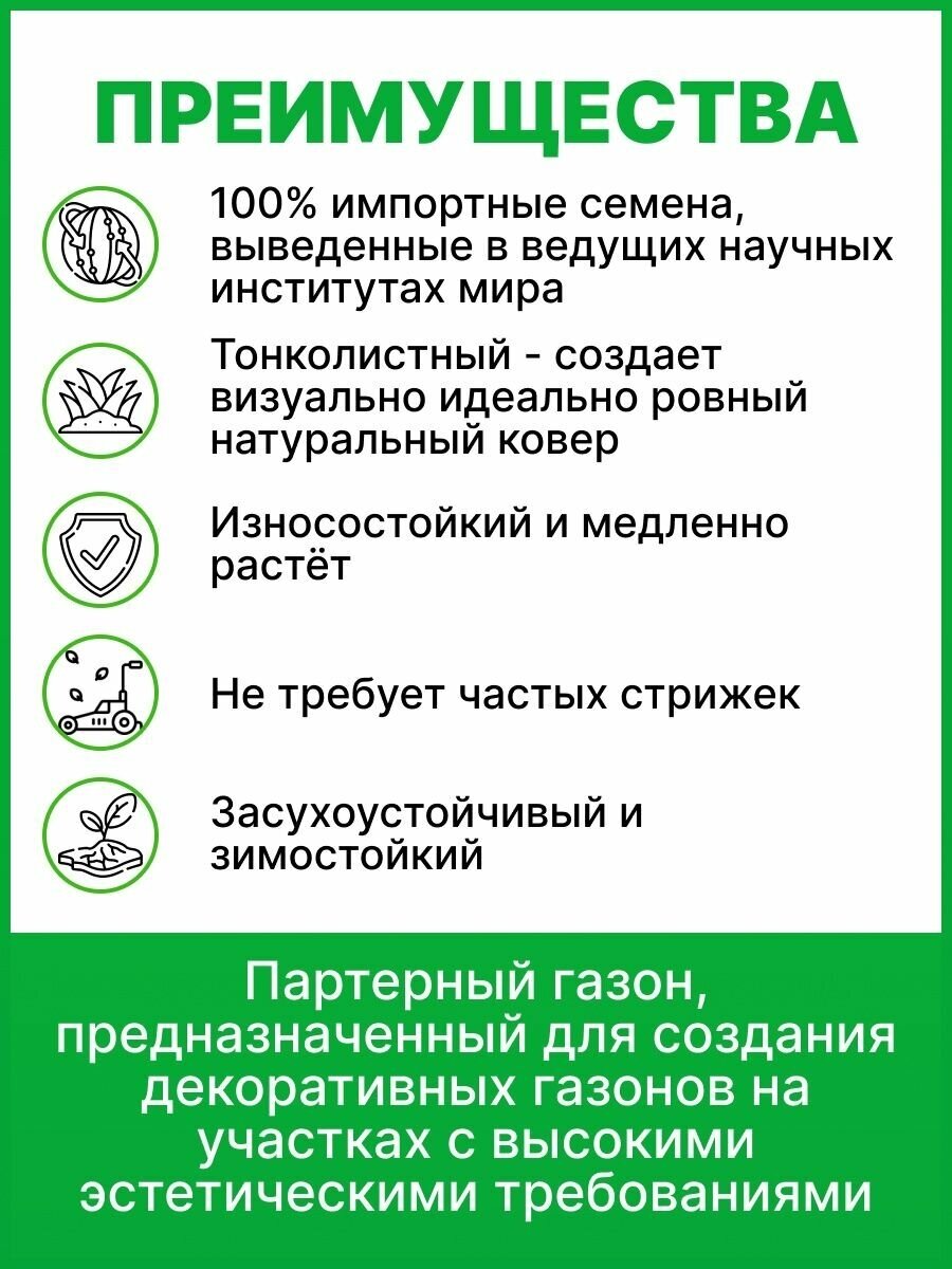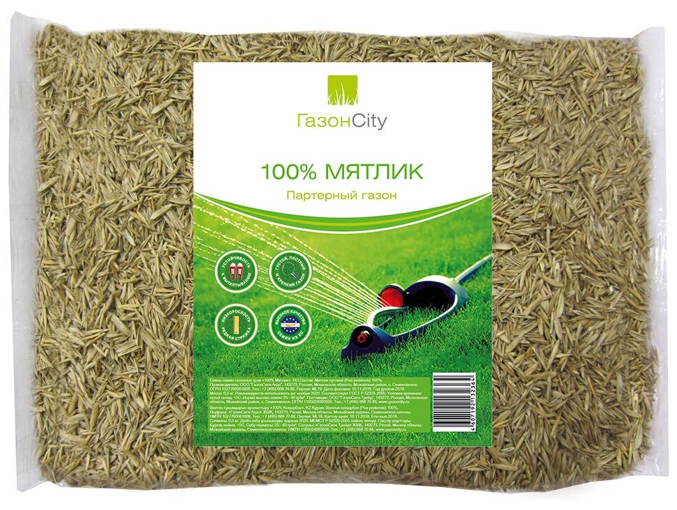 Партерный газон 100% МЯТЛИК - смесь газонных трав, предназначенная для создания устойчивых декоративных газонов на участках с повышенными эстетическими требованиями.