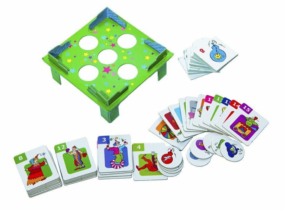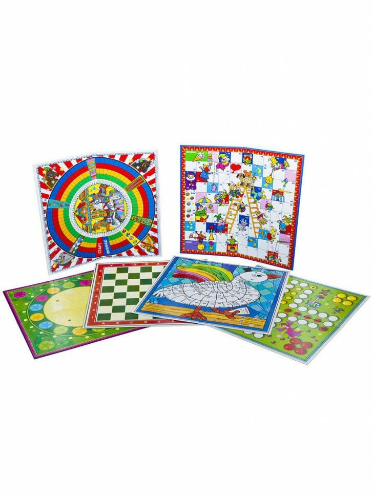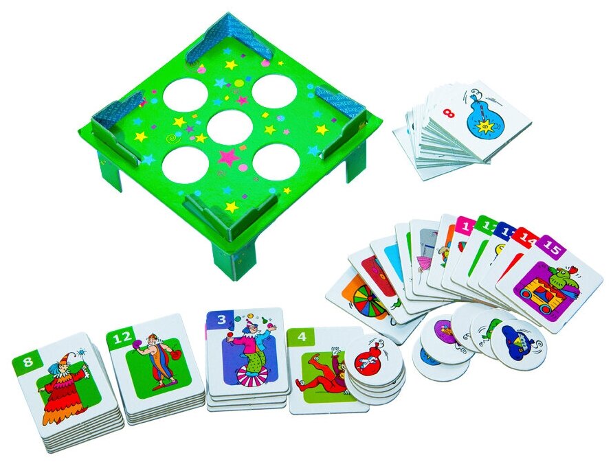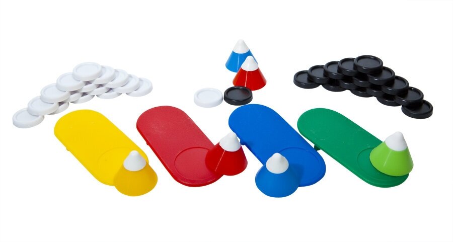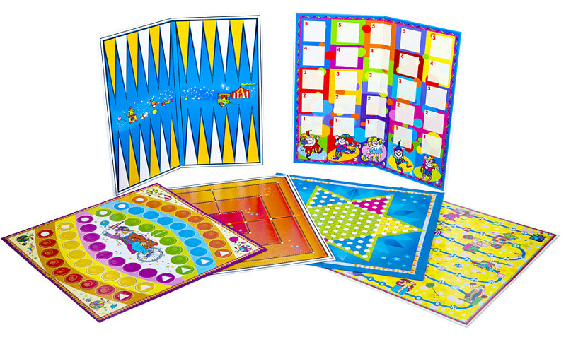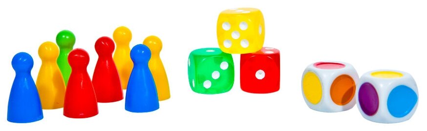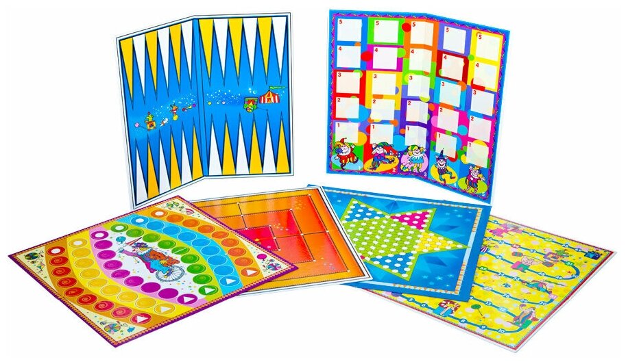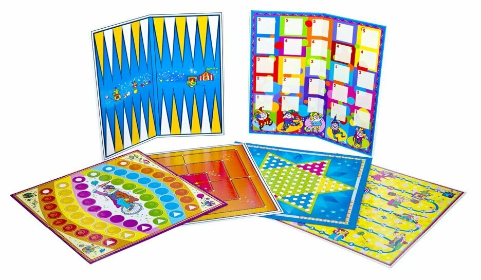 | Состав набора | игровые поля (двусторонние) (6 шт.), шашки (32 шт.), наклейки на шашки (шахматы) (32 шт.) (8 наклеек в рамках - запасные), кубики с точками (3 шт.), кубики цветные (2 шт.), фишки (красные, желтые, зеленые, синие) по 16 шт. каждого цвета, фишки (оранжевые и фиолетовые) - по 10 шт. каждого цвета, жетоны (13 шт.), колпачки четырех цветов (12 шт.), батут сборный из картона, катапульты (4 шт.), парные карточки маленькие (26 шт.), парные карточки большие (30 шт.), правила |