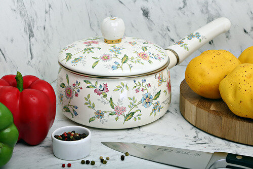 Серия "" японской посуды Ejiry способна кардинальным образом преобразить интерьер Вашей кухни. Привлекательный дизайн - нежные цветочные мотивы с золотыми акцентами, плавные формы и практичные объемы, удобные ручки. Уникальные характеристики - экологичное стекловидное эмалированное покрытие, высокая теплопроводность, устойчивость к воздействию пищевых кислот, сохранение витаминов и минералов в пище. Такая посуда прослужит долгие годы. Это отличный подарок хозяйкам, особенно начинающим, ведь в такой посуде легко и просто получаются любые блюда! Можно мыть в посудомоечных машинах. Не использовать в микроволновой печи. Упакована в подарочные коробки