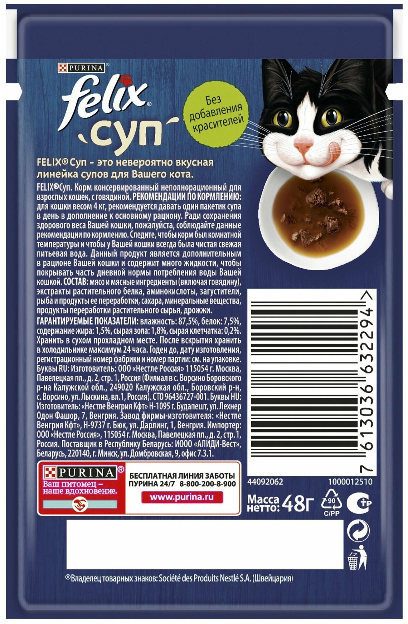 Суп с говядиной Purina FELIX - вкусное и полезное лакомство для кошки, которое идеально дополнит основной рацион.