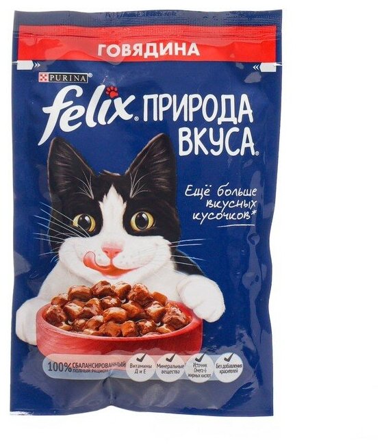 Влажный корм для кошек Felix Корм для кошек FELIX для взрослых говядина 85 г