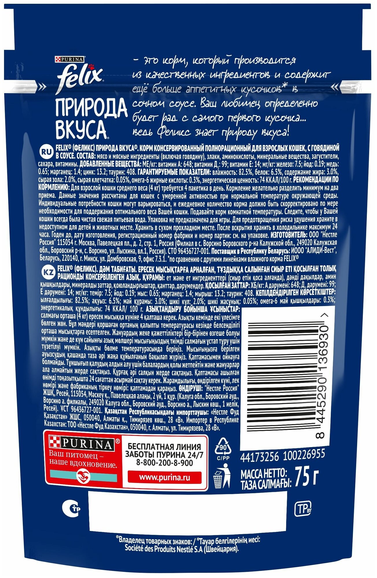 Модель: Корм для кошек FELIX для взрослых говядина 85 г