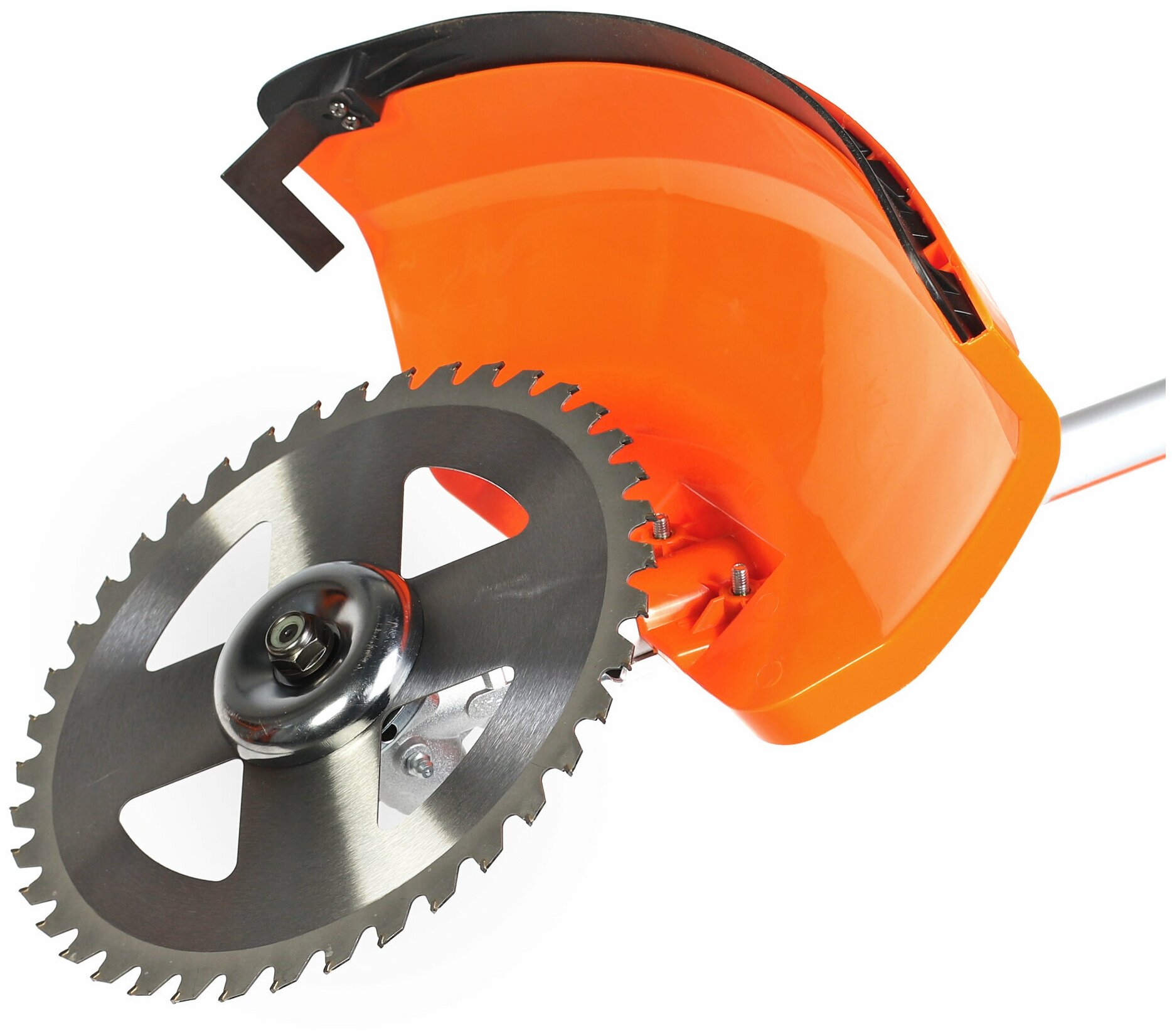 - В комплект входят катушка с леской, трехлопастной нож и 40-зубый пильный диск.