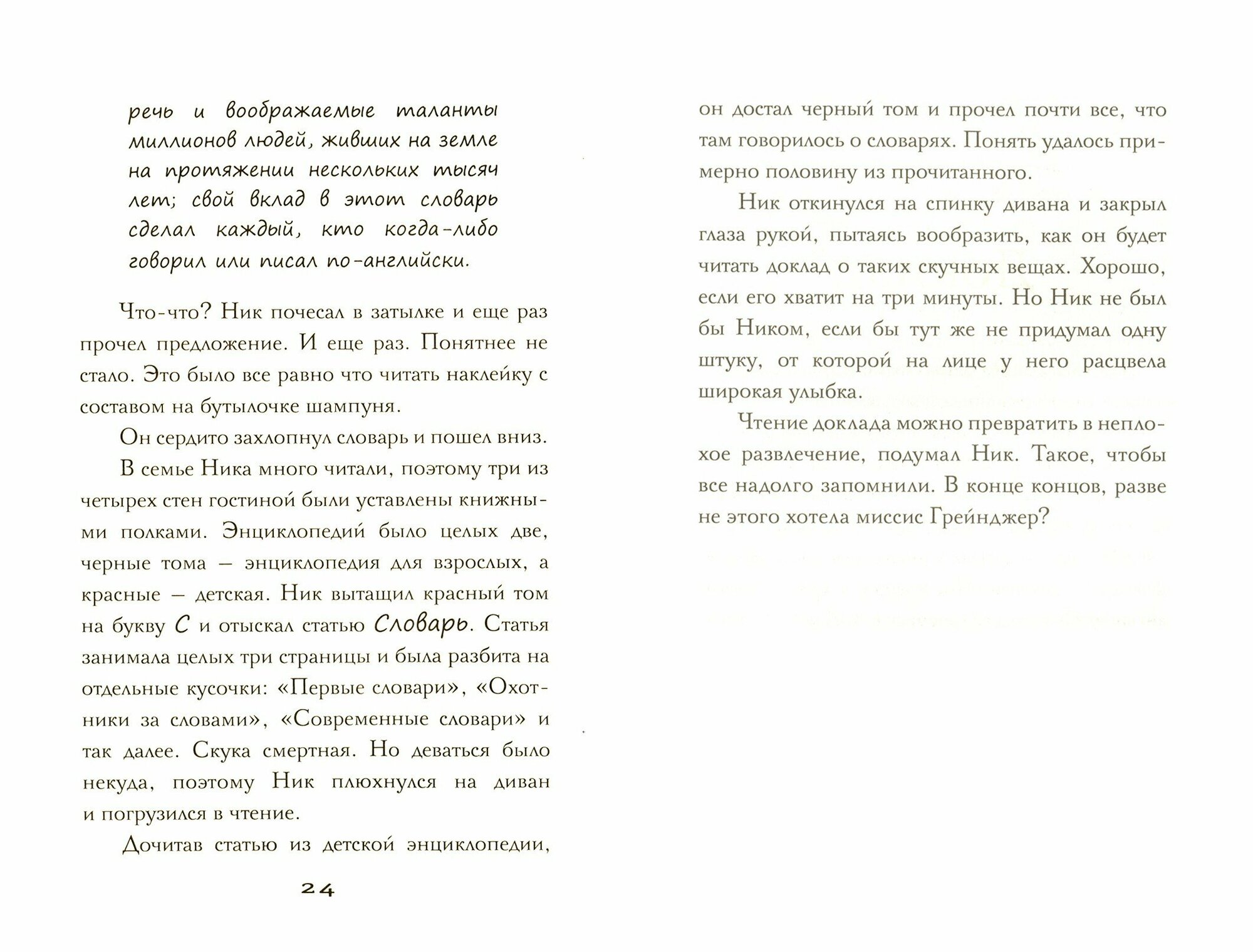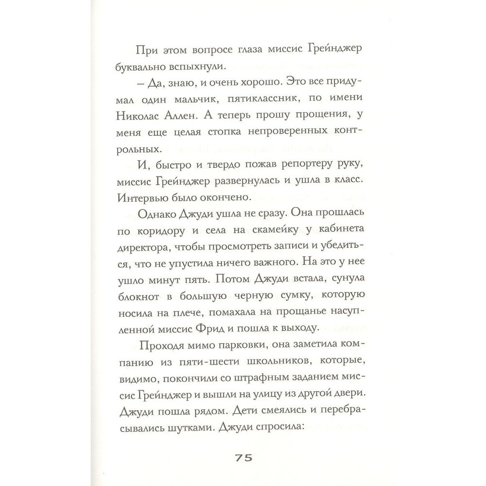 Главный герой - пятиклассник Ник Аллен - мальчишка обаятельный, энергичный, генерирующий идеи моментально. Взрослые тоже не изображены отталкивающими, их портреты играют разными красками. Прочитала на одном дыхании! -