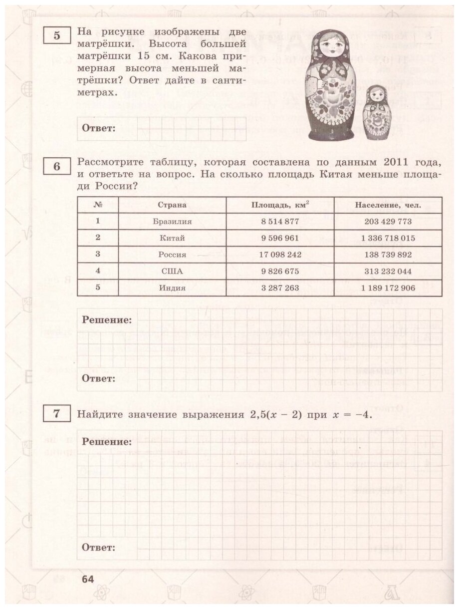 В 6-х классах варианты книги можно использовать в начале учебного года в качестве диагностической проверочной работы.