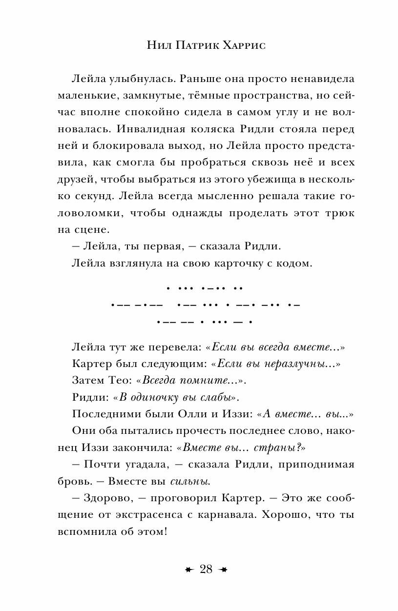 Потрясающая книга. Очень ждала её, хотя явно переросла возраст целевой аудитории) Нил Патрик Харрис пишет очень легко и доступно, а интегрированные в повествование шифры и загадки только придают книге шарма. В свое время также интересно было читать серию книг "Нина", но она не была настолько легко читаемой и приятной.