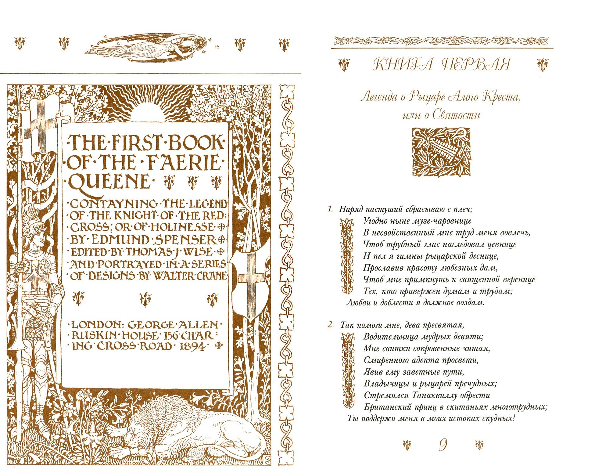 В настоящие издание вошел перевод первой книги поэмы "Легенда о Рыцаре Алого Креста, или о Святости" (1590), рассказывающей историю св. Георгия Победоносца, фантазией автора включенного в круг короля Артура. Кроме того приводятся выдержки из второй и третей книг - "Легенды о сэре Гюйоне, или об Умеренности" и "Легенды о Бритомарте, или о Целомудрии"