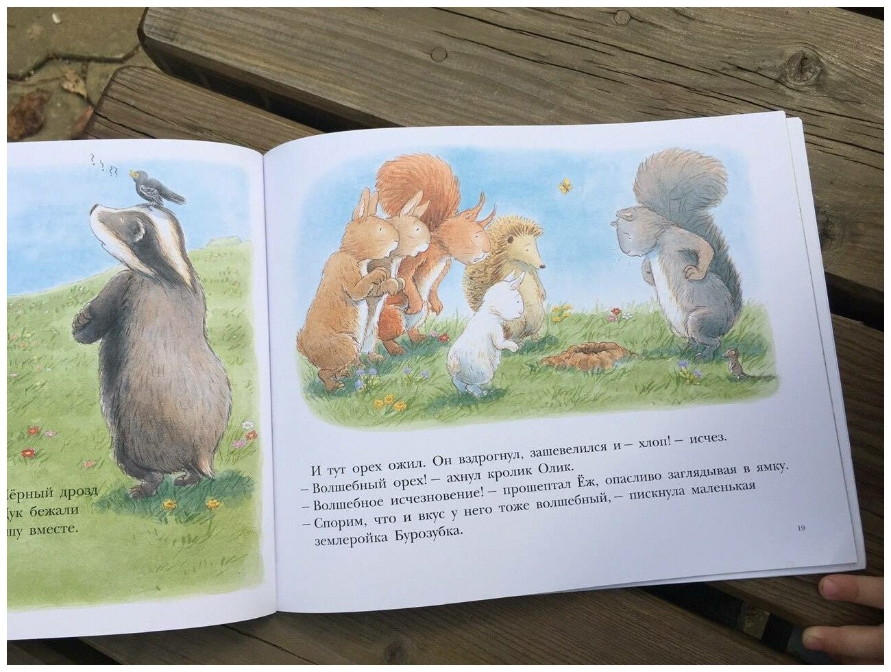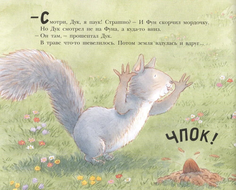 Будете читать и улыбаться приключениям лесных животных, удивляться их хитрости, озорству и смекалке. Мои дети в восторге, да и я тоже. До последних страниц не догадывались, что же скрывается за скорлупкой ореха, торчащей из земли.