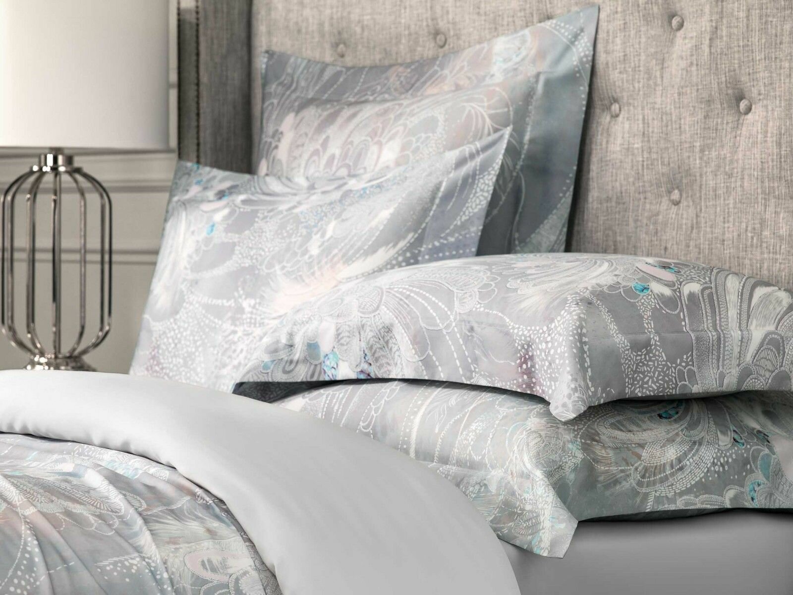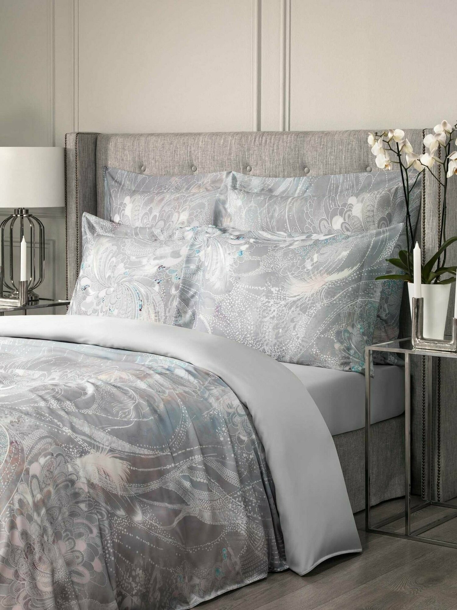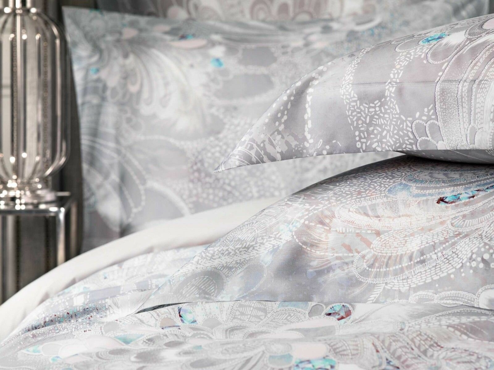 В комплекте Togas "Перла" нашла отражение палитра жемчужных оттенков - от сияющего радужного перламутра до редких тонов серебристого и розового жемчуга. Необычный рисунок этого постельного белья словно пришел из снов или грез. Красивое оперение загадочных птиц, необычные линии сказочных цветов, сияние граней драгоценных камней - все это будто бы перемешалось в туманной дымке сновидений. Постельное белье изготовлено из волокна, получаемого из австралийского эвкалипта. Этот материал сочетает в себе лучшие свойства льна, шелка и хлопка, при этом он долговечнее и практичнее. Постельное белье необычайно приятно на ощупь, очень мягкое и шелковистое.