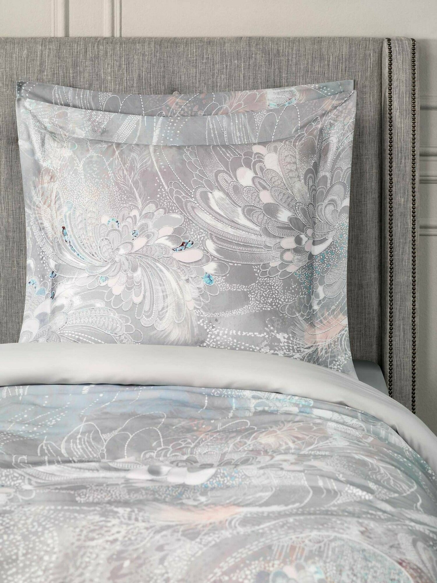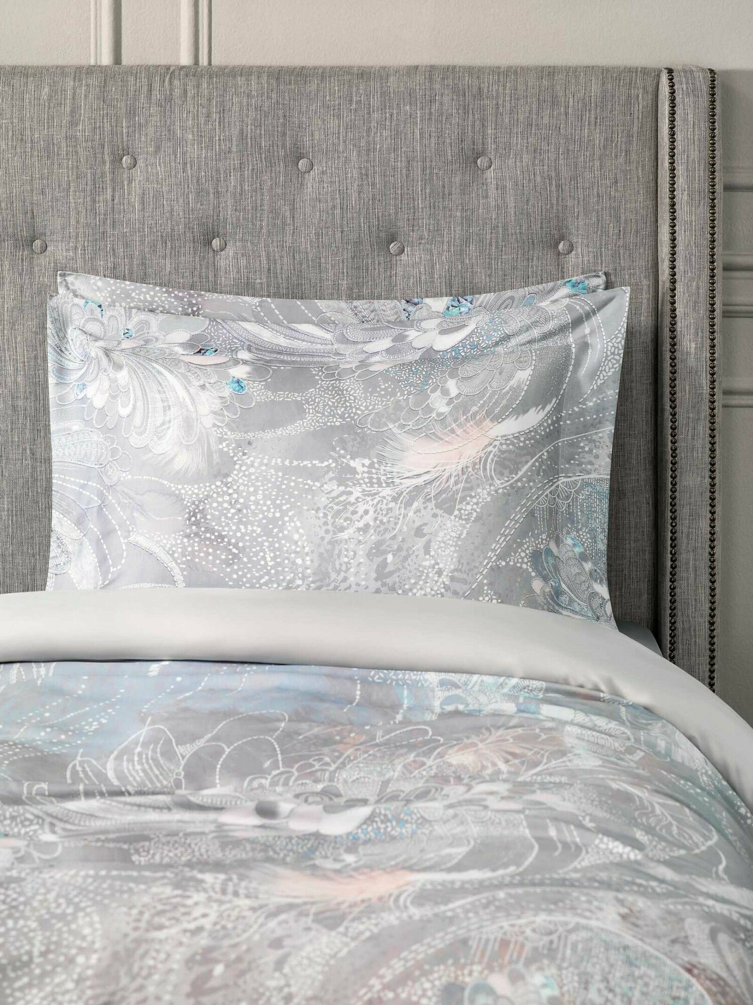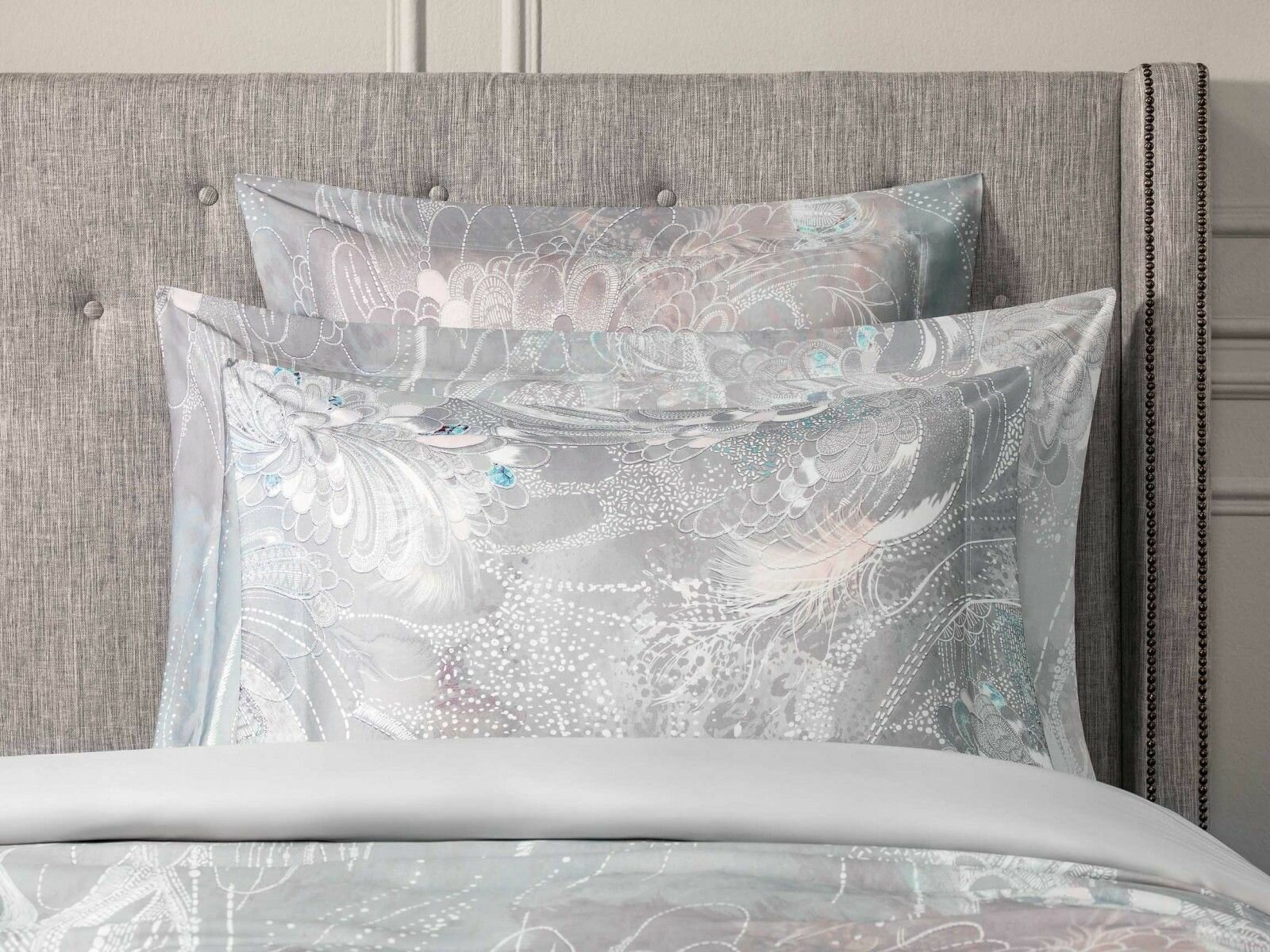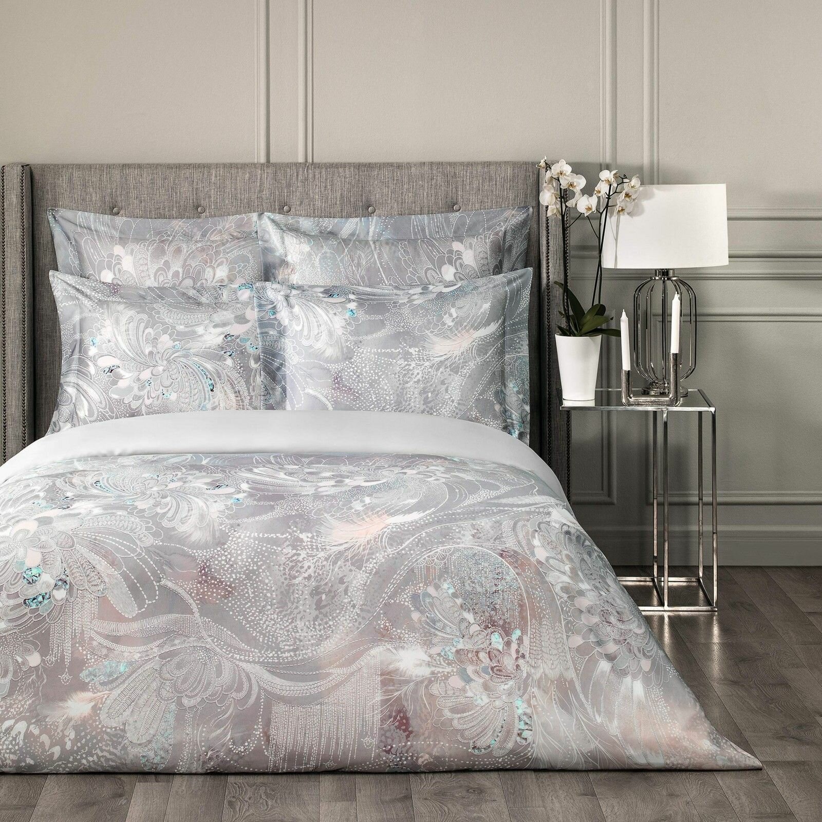 В комплекте Togas "Перла" нашла отражение палитра жемчужных оттенков - от сияющего радужного перламутра до редких тонов серебристого и розового жемчуга. Необычный рисунок этого постельного белья словно пришел из снов или грез. Красивое оперение загадочных птиц, необычные линии сказочных цветов, сияние граней драгоценных камней - все это будто бы перемешалось в туманной дымке сновидений. Постельное белье изготовлено из волокна, получаемого из австралийского эвкалипта. Этот материал сочетает в себе лучшие свойства льна, шелка и хлопка, при этом он долговечнее и практичнее. Постельное белье необычайно приятно на ощупь, очень мягкое и шелковистое.