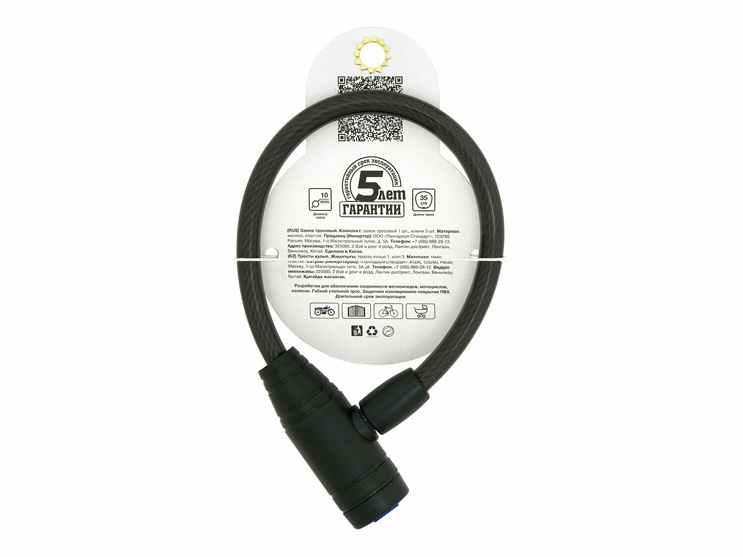 - Модель: Замок тросовый PL 407-35 черный