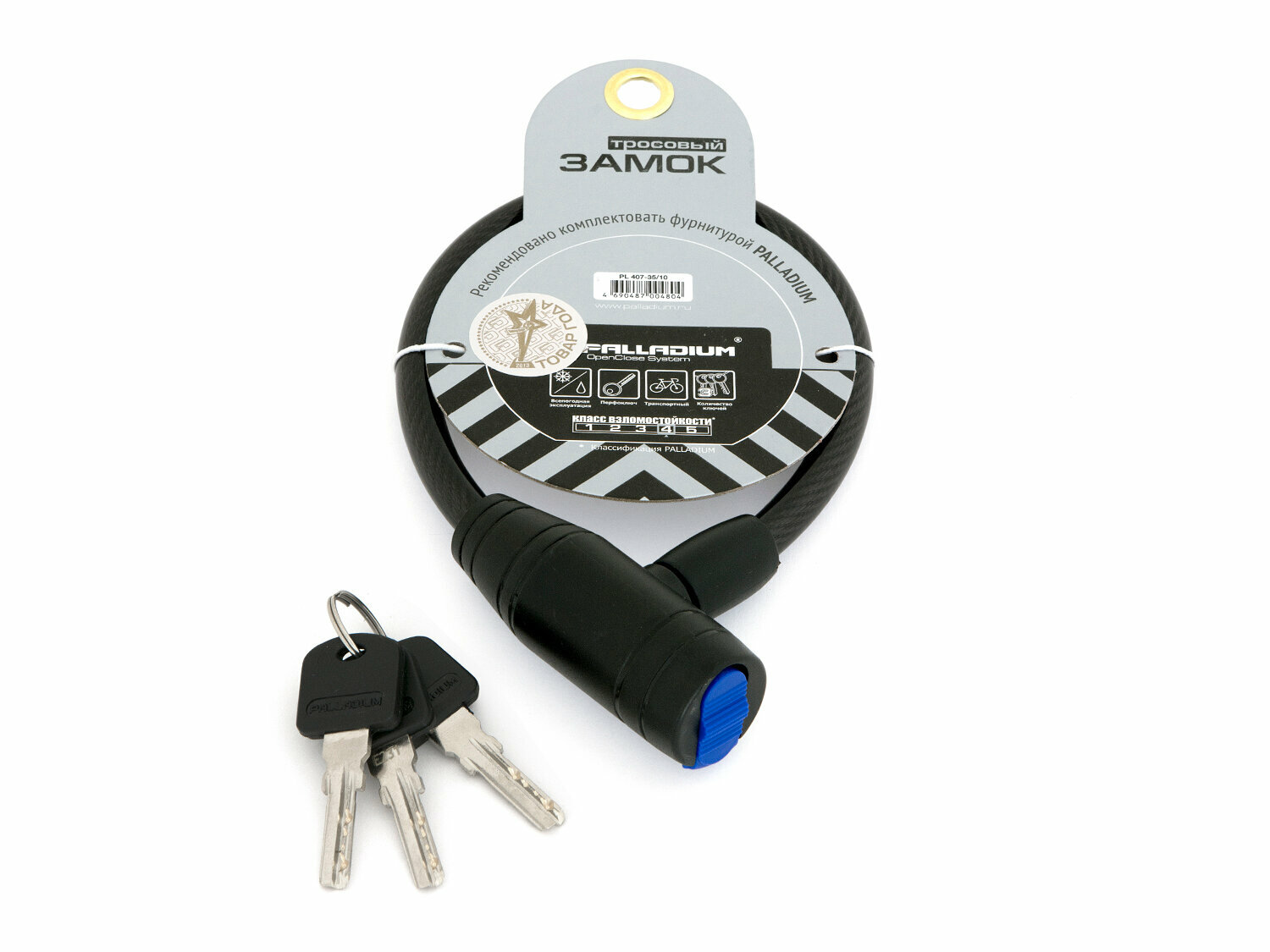 - Тросовый замок Palladium PL 407-35/10 СТ-00000684 выполнен из стали.