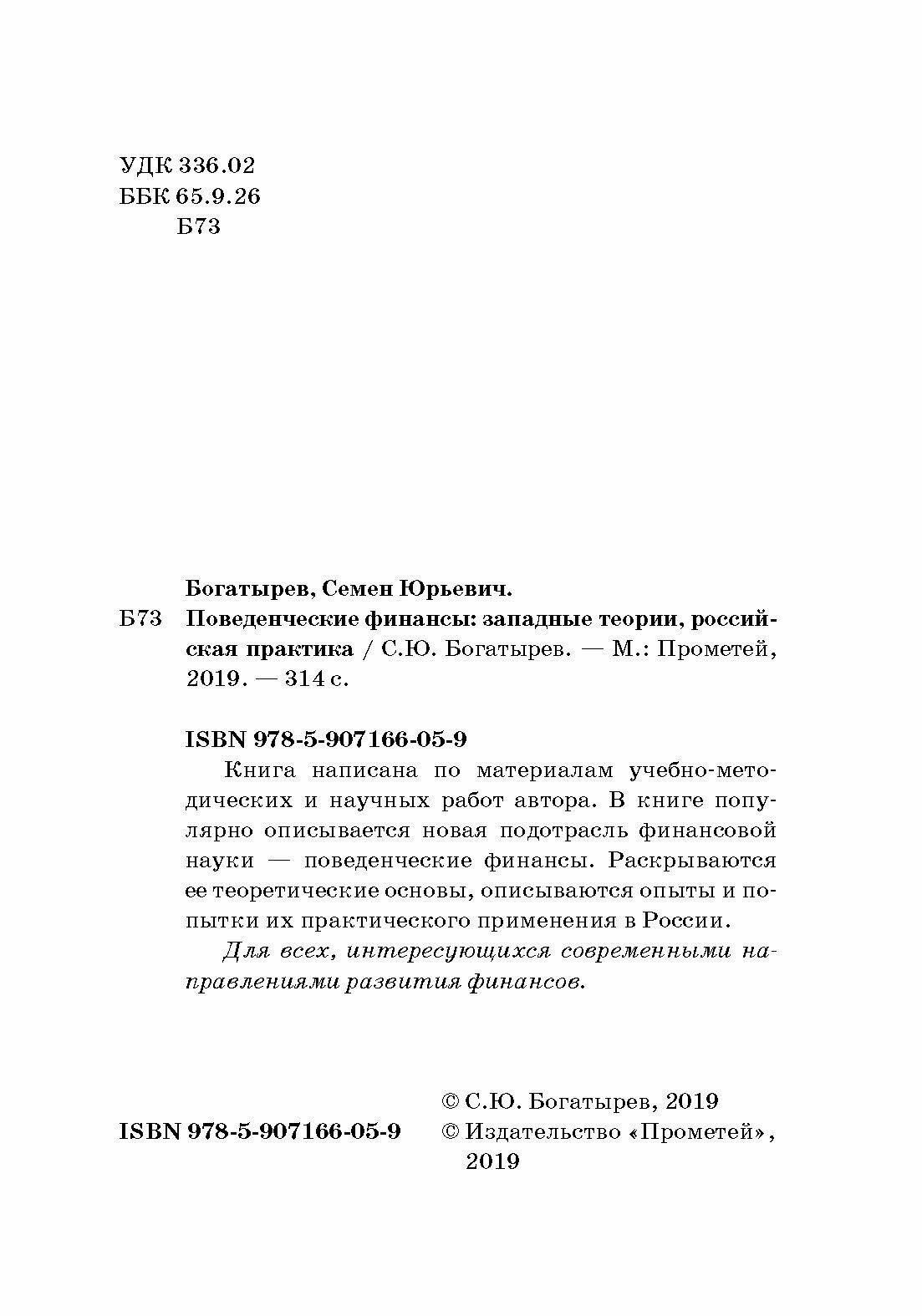 Поведенческие финансы. Западные теории российская практика (С. Ю. Богатырев); Прометей, 2019