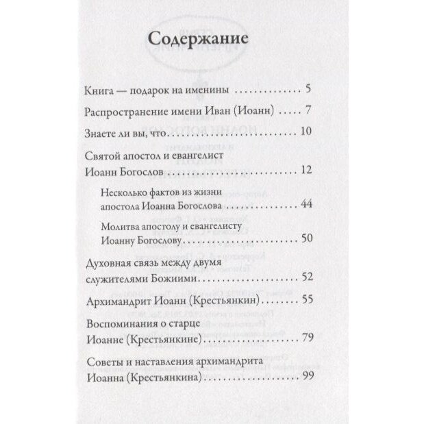 При крещении мы получаем имя святого. Эта книга, входящая в серию "Именинник", станет прекрасным подарком тем, кто носит имя Иван (Иоанн) и для кого святой Иоанн Богослов является небесным покровителем. Она включает литературно обработанное житие святого апостола Иоанна Богослова и рассказывает о жизненном подвиге Иоанна (Крестьянкина), великого старца наших дней, о таинственной духовной связи апостола Христа и современного подвижника благочестия.