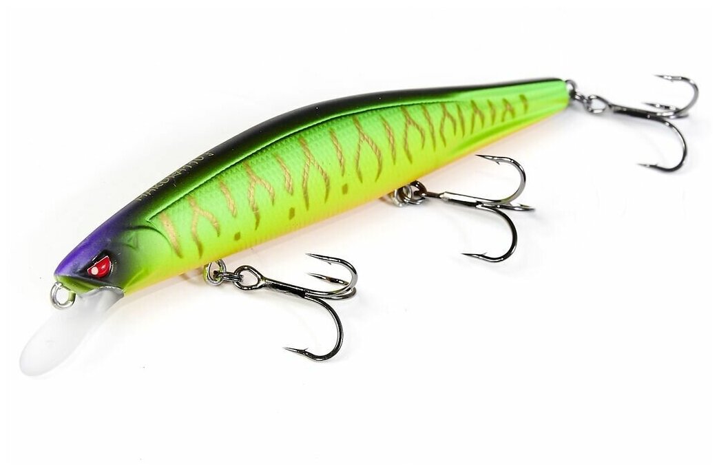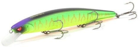 Компания Lucky John представляет новую серию классических воблеров-минноу Makora. Приманка разработана в двух особо востребованных для ловли хищника размерах 110 мм и 130 мм. Особенность воблеров в этой серии – их уникальная игра, которую они демонстрируют во время как рывковой, так и равномерной проводки. Сильно отклоняясь от линии проводки, двигаясь широкими галсами, эти воблеры привлекают внимание щуки. Прогонистое тело, в сечении, в сочетании со специально разработанной специалистами Lucky John огрузкой, заставляет воблер при рывке не просто легко перемещаться из стороны в сторону, но и поворачиваться немного вокруг своей оси, что неотразимо действует на хищника во время паузы. Система дальнего заброса помогает далеко, и точно забросить приманку. Воблеры этой серии имеют две версии-плавающую и нейтральной плавучести (суспендер), что обеспечивает широкий диапазон их применения. А оснащение тремя мощными тройниками сократило до минимума возможность схода рыбы.Расцветка: 301.Глубина: до 2,0 м.Длина: 13 см.Вес: 22 грамма.