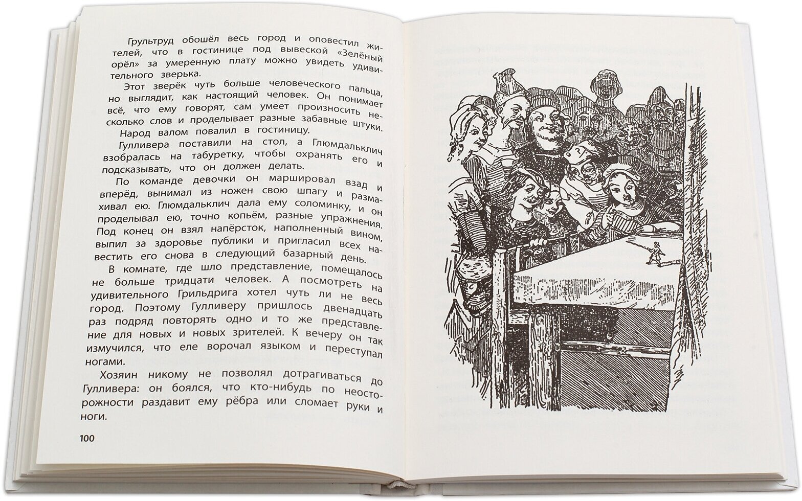 Купила эту книгу, потому что у меня была такая в детстве. Есть более красочные издания, но тут вполне демократичная цена и приличное качество. Плюс весьма оригинальные иллюстрации, которых нет в других детских книгах. Бумага желтоватая, но шрифт хороший, крупный. Книга небольшая, удобная и читается легко - сразу подумала: сама заодно перечитаю. Сначала думала, что ребенок подрастет и прочитает Свифта в оригинале, он у меня англоязычный, потом поняла, что русская версия адаптирована для детей, а вот до оригинала еще расти и расти и неизвестно, будет ли ему интересна сатирическая повесть на злобу дня. Зато в таком "детском" упрощенном варианте он сможет ознакомиться с этим произведением намного раньше.