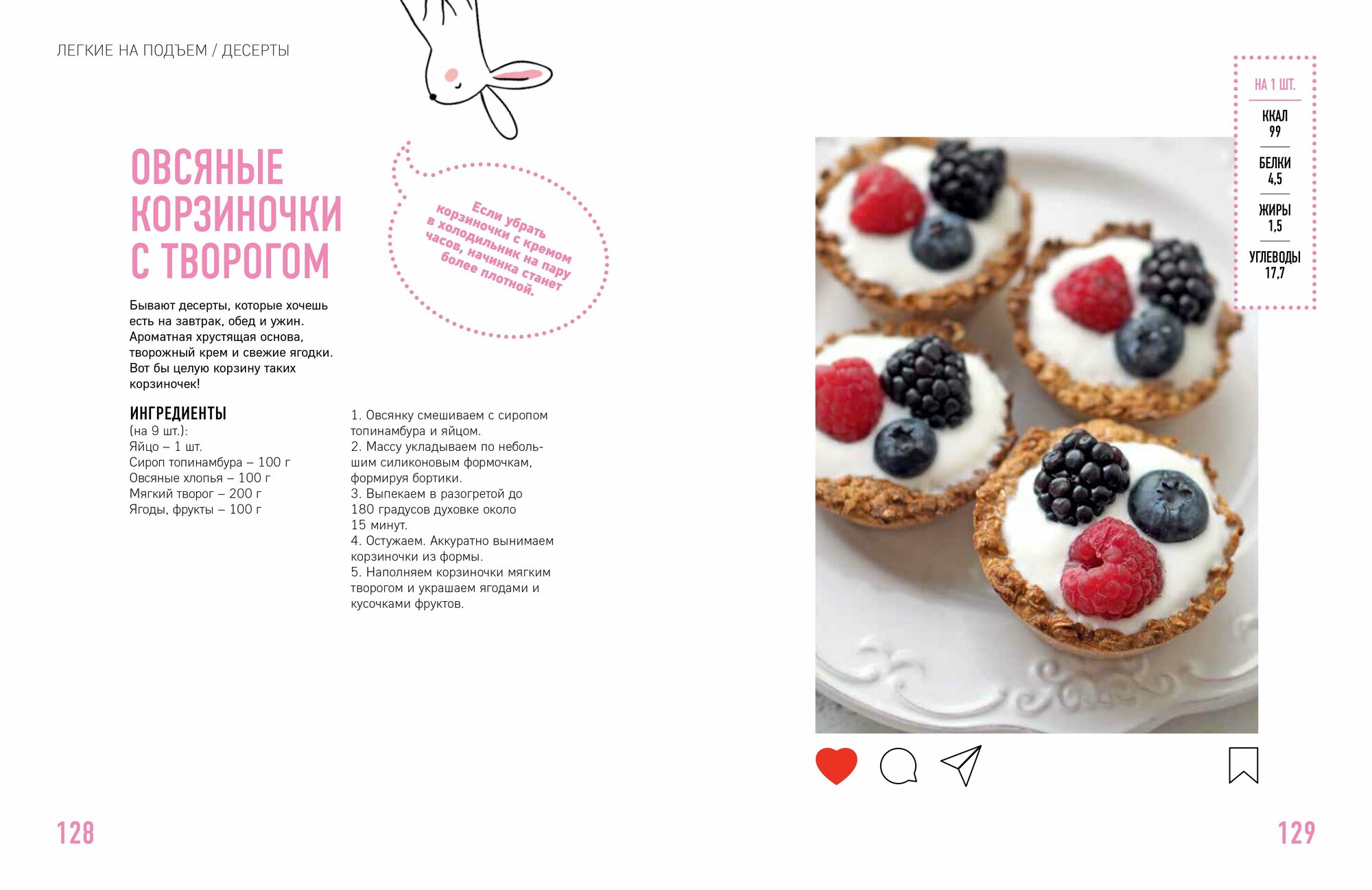 Заказала книжечку, как и многие за последние месяцы, потому что автор - из моих подписок в Инстаграмм. Прелесть, а не книжечка! Легкие в приготовление рецепты, есть даже сырки глазированные, тортики, оладьи, сырники, пицца, запеканки овощные и с курицей - и все это с минимумом калорий. Очень красивые фотографии, как и в блоге у автора, посуда, все очень женственное и легкое. Я рада что купила книгу! Передаривать не буду точно.