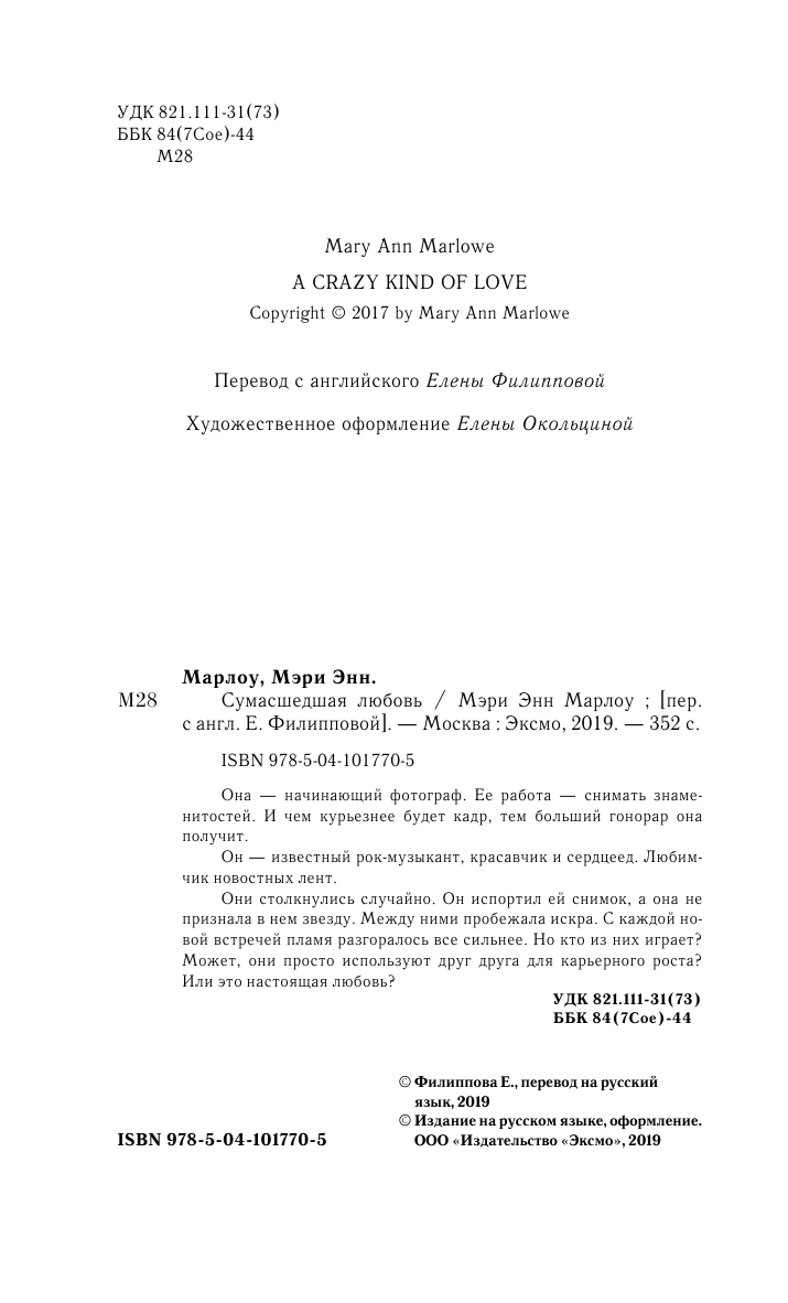 Книга: Сумасшедшая любовь (Марлоу Мари Энн); ООО "Издательство "Эксмо", 2019