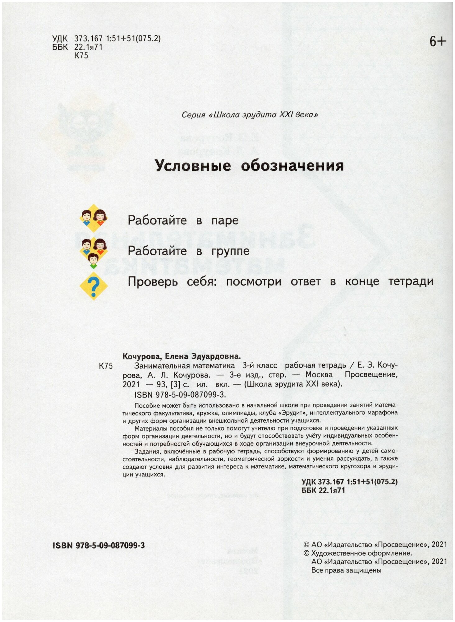 Занимательная математика. 3 класс. Рабочая тетрадь (Кочурова Елена Эдуардовна, Кочурова Анна Леонидовна (соавтор)); Вентана-Граф, 2019