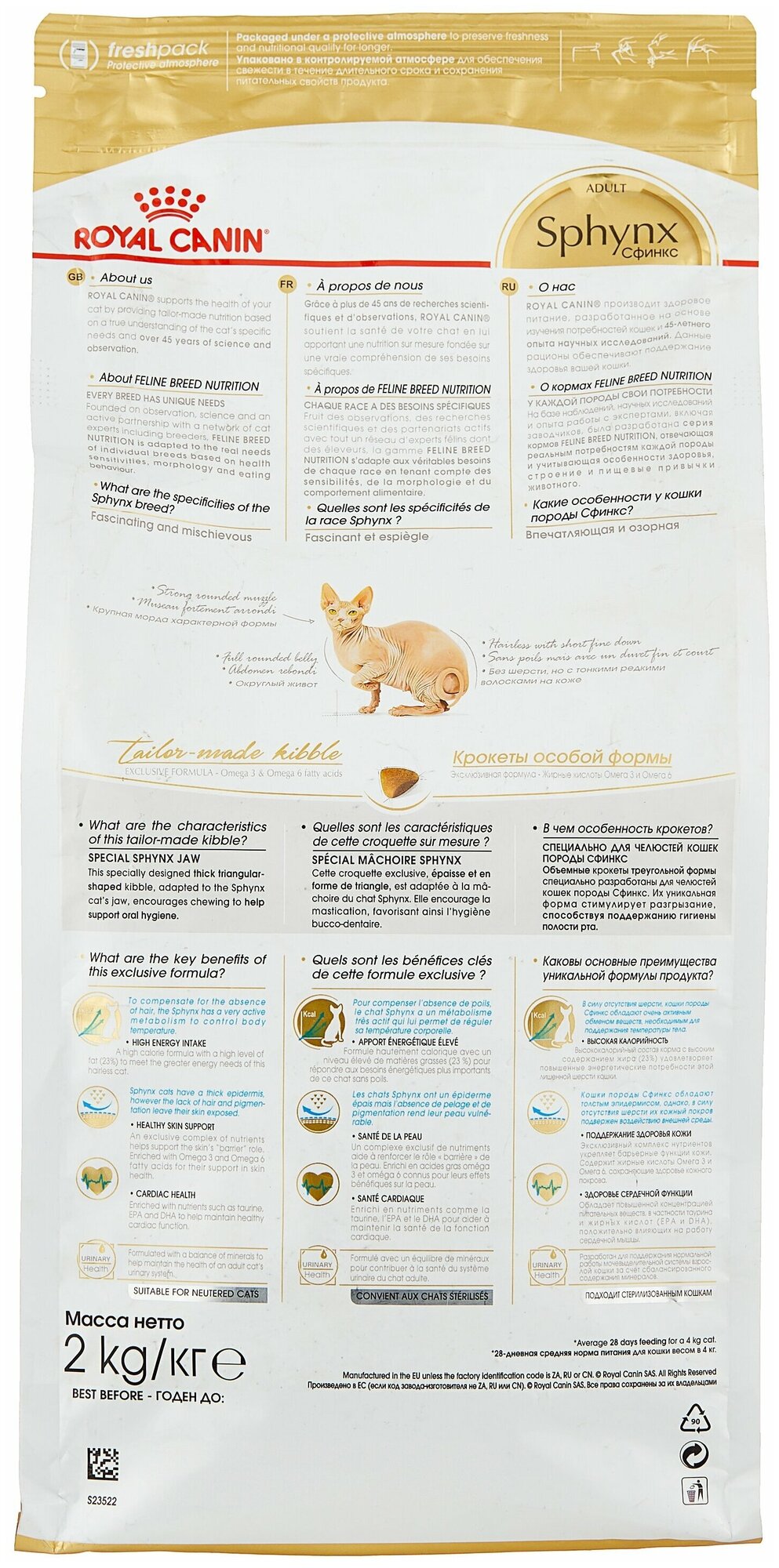Royal Canin Sphynx Adult. Сухой корм Роял Канин с мясом птицы предназначен для взрослых кошек породы Сфинкс. По ингредиентному составу относится к кормам суперпремиум класса. Содержит все витамины и минеральные вещества необходимые для повседневного здорового питания вашего питомца.