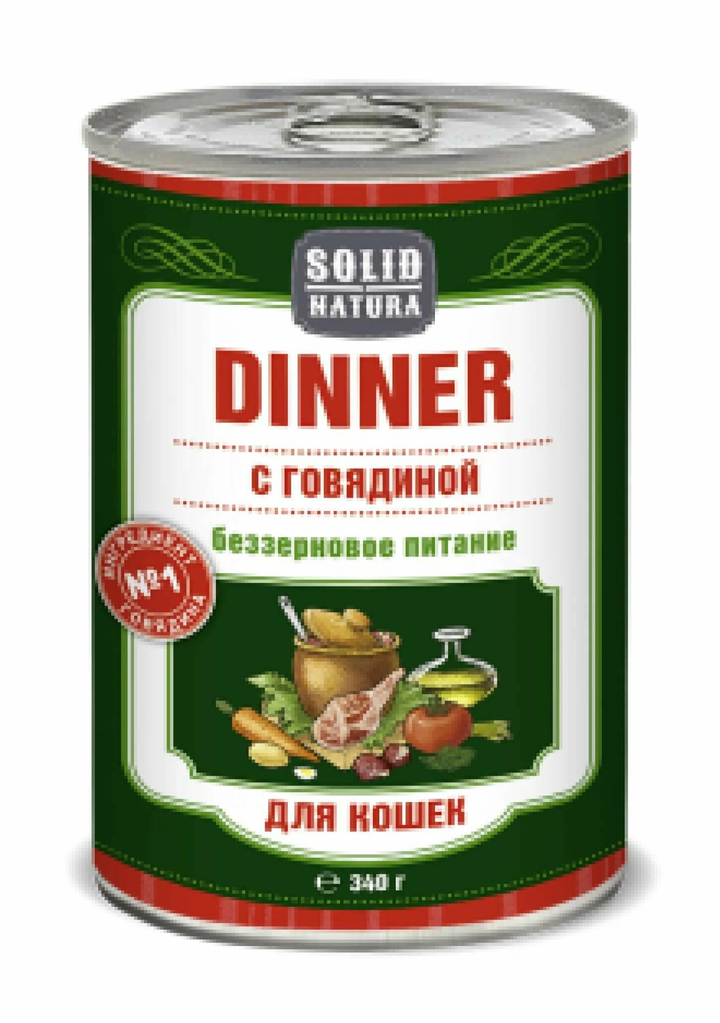 Влажный корм для кошек Solid Natura Dinner Говядина 034 кг