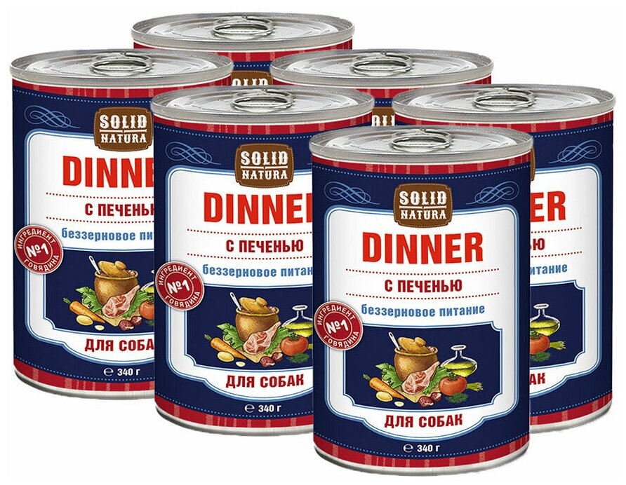 Solid Natura Dinner с печенью - консервированное влажное питание класса премиум для собак. Нежная консистенция в виде фарша, отличная поедаемость, в составе отсутствуют зерновые культуры. Изготовлено из натурального мясного сырья, не содержит сою, ароматизаторы и ГМО.
