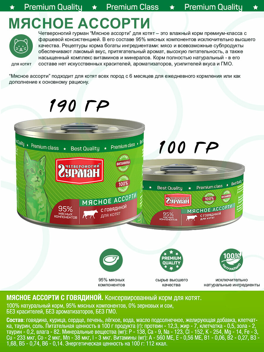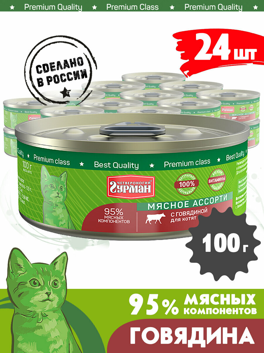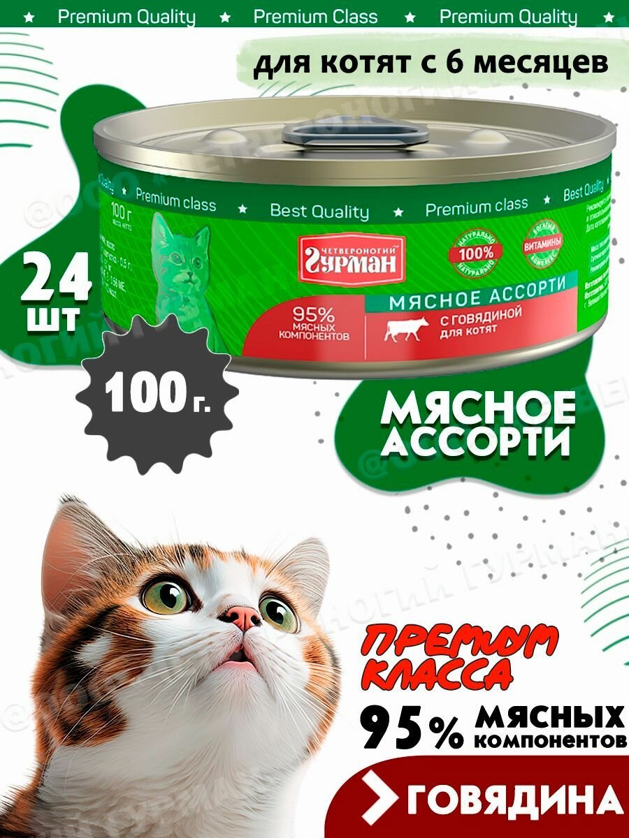 Влажный корм для котят Четвероногий Гурман Мясное ассорти с говядиной 034 кг