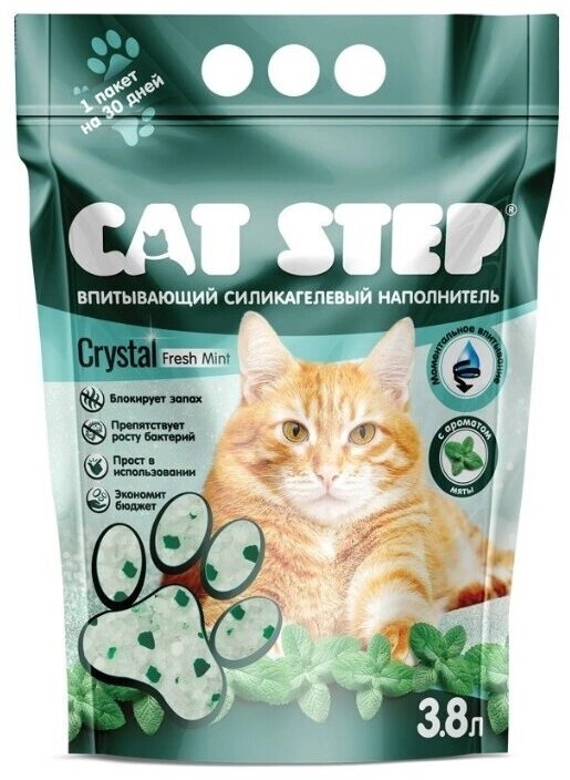 Cat Step – классический вариант силикагелевого наполнителя с добавкой синих гранул, обладающих антибактериальными свойствами. Обеспечит чистоту кошачьего лотка и превосходно впитывает любой неприятный запах.