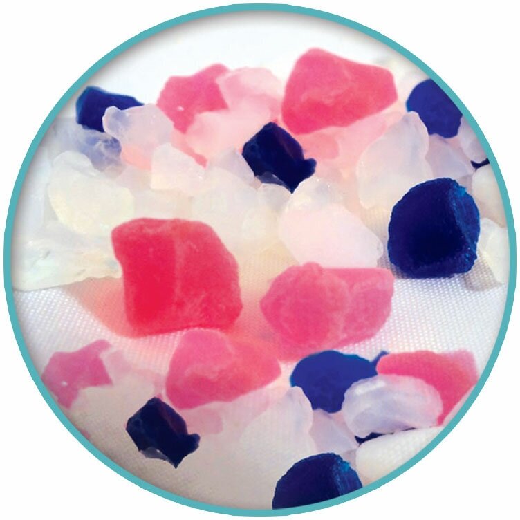 Cat Step Laguna – силикагелевый кошачий наполнитель, в составе которого есть специальные синие и розовые гранулы, которые обладают антибактериальным эффектом.