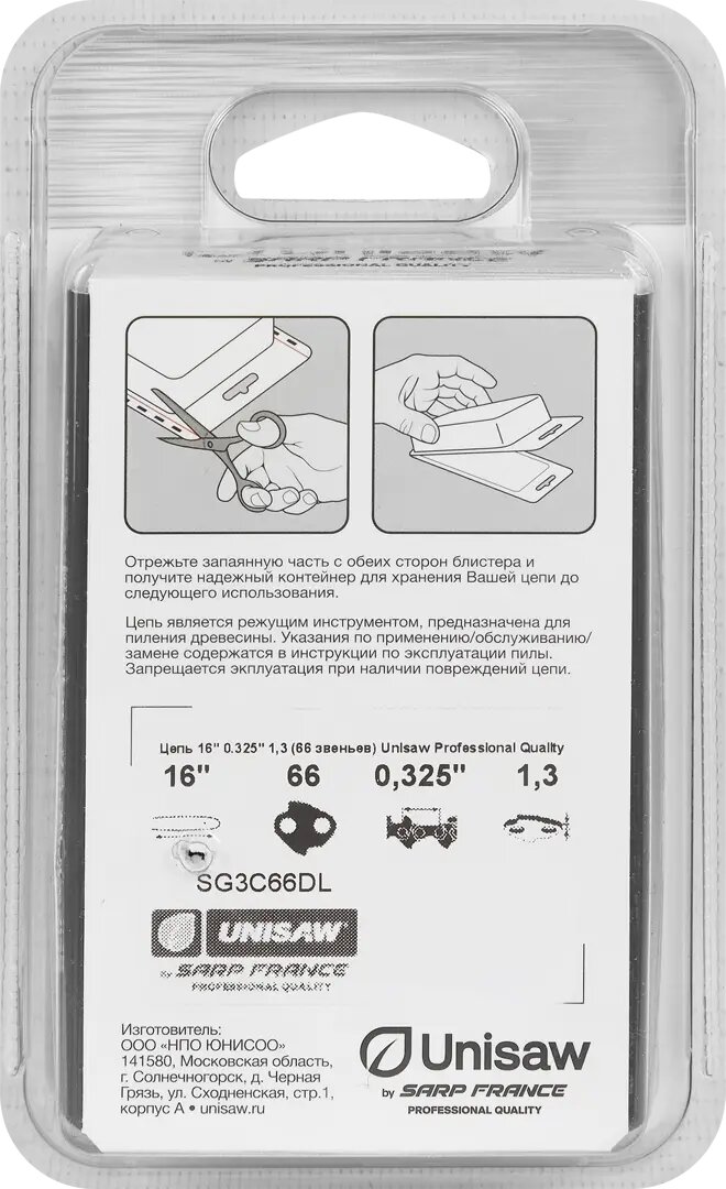 Модель: Цепь для бензопил UNISAW 66 звена 16" 0,325