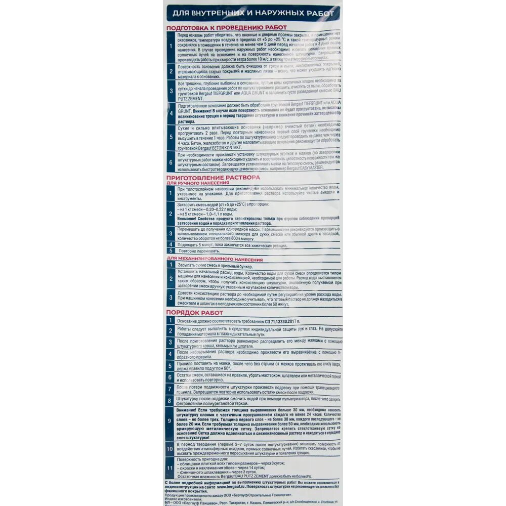 Модель: Штукатурка цементная Bergauf для внутренних и наружных работ 25 кг
