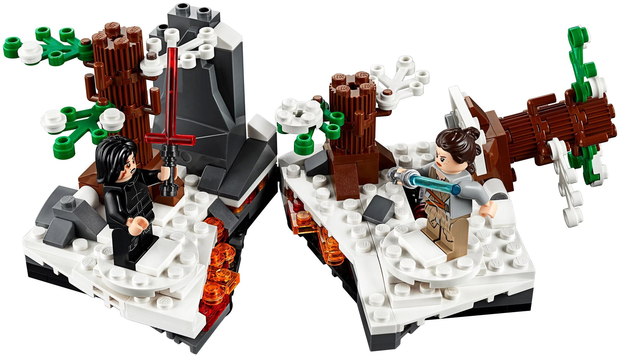 Яркая битва Рея и Кайло Рена из фильма «Звездные войны. Эпизод VII: Пробуждение силы». Герои находятся на вращающейся платформе базы Старкиллер и сражаются световыми мечами. Они рубят деревья, чтобы найти спрятанный бластер, и стараются на упасть в пролом во время крушения базы.