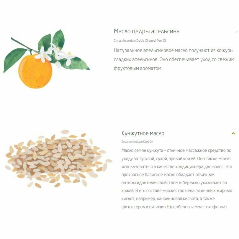 | Состав | Water (Aqua) Sesamum Indicum (Sesame) Seed Oil Glycerin Coco-Glucoside Alcohol Disodium Cocoyl Glutamate Chondrus Crispus (Carrageenan) Extract Citrus Aurantium Dulcis (Orange) Peel Oil Calendula Officinalis Flower Extract Xanthan Gum Lactic Acid Sodium Cocoyl Glutamate Fragrance (Parfum)1 Limonene1 Linalool1 Benzyl Benzoate1 Citral1 from natural essential oils |