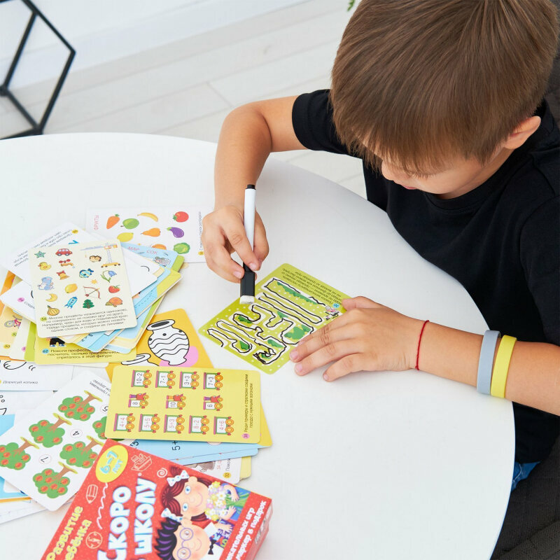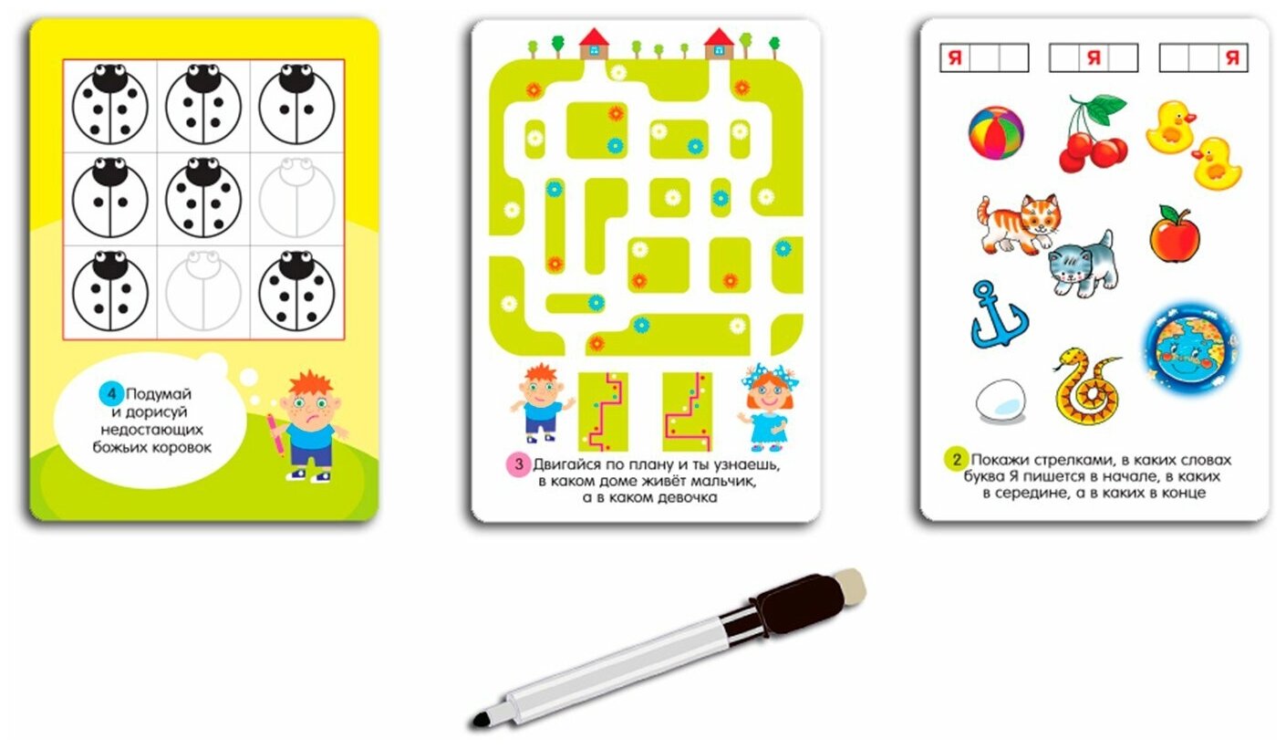 | Состав набора | 50 двусторонних карточек с закруглёнными безопасными краями и смываемый фломастер |