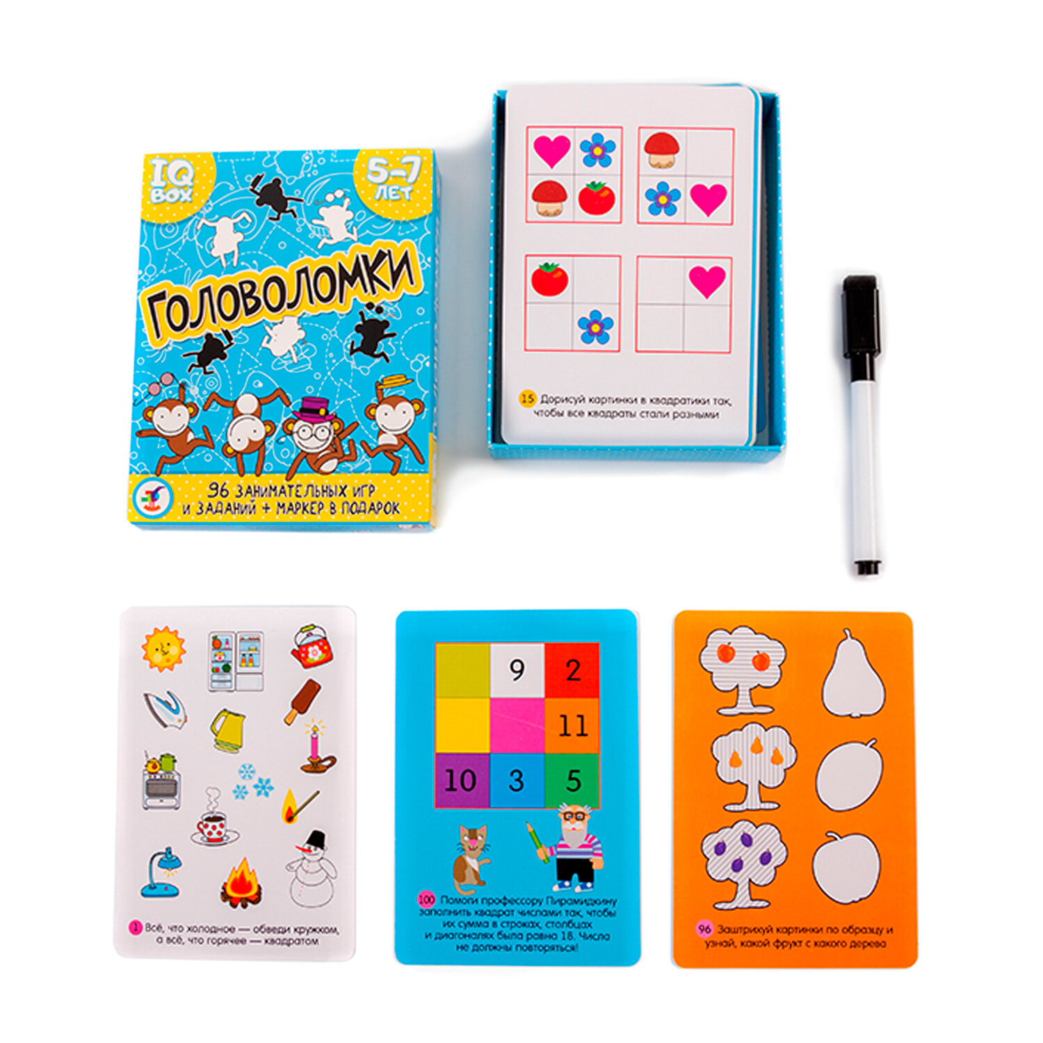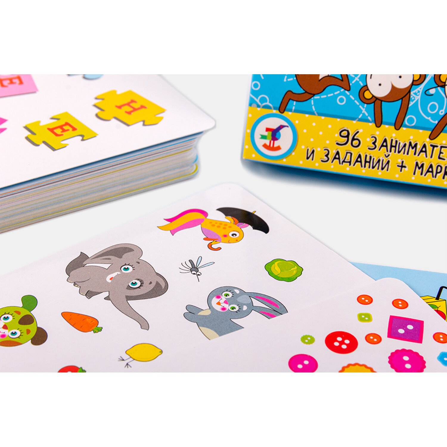 | Состав набора | 50 двусторонних карточек с закруглёнными безопасными краями и смываемый фломастер |