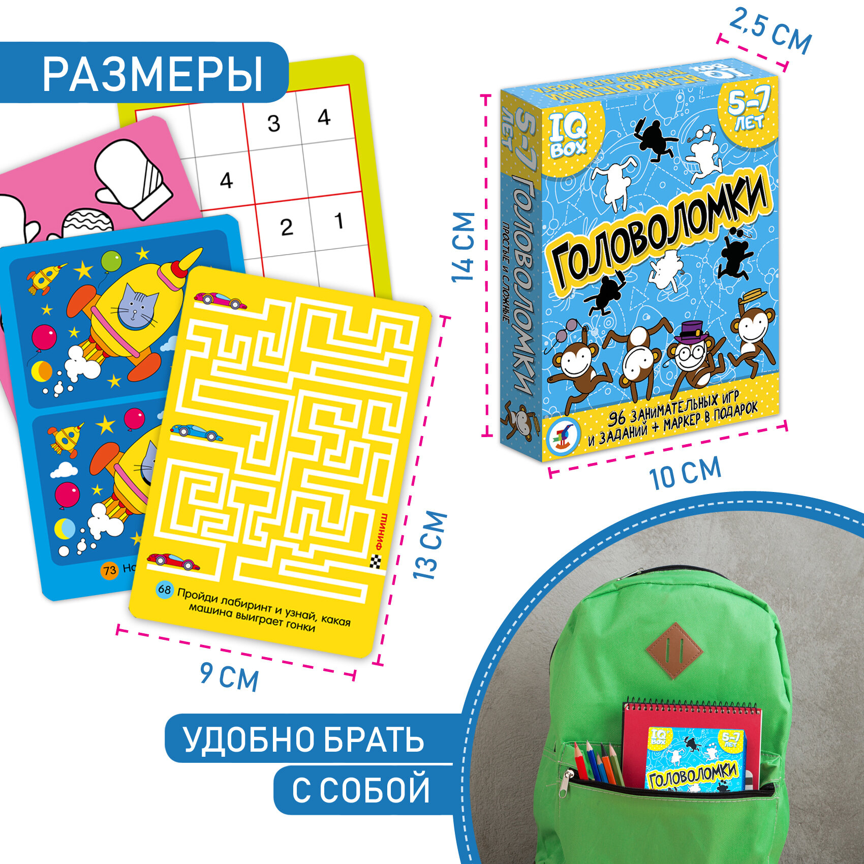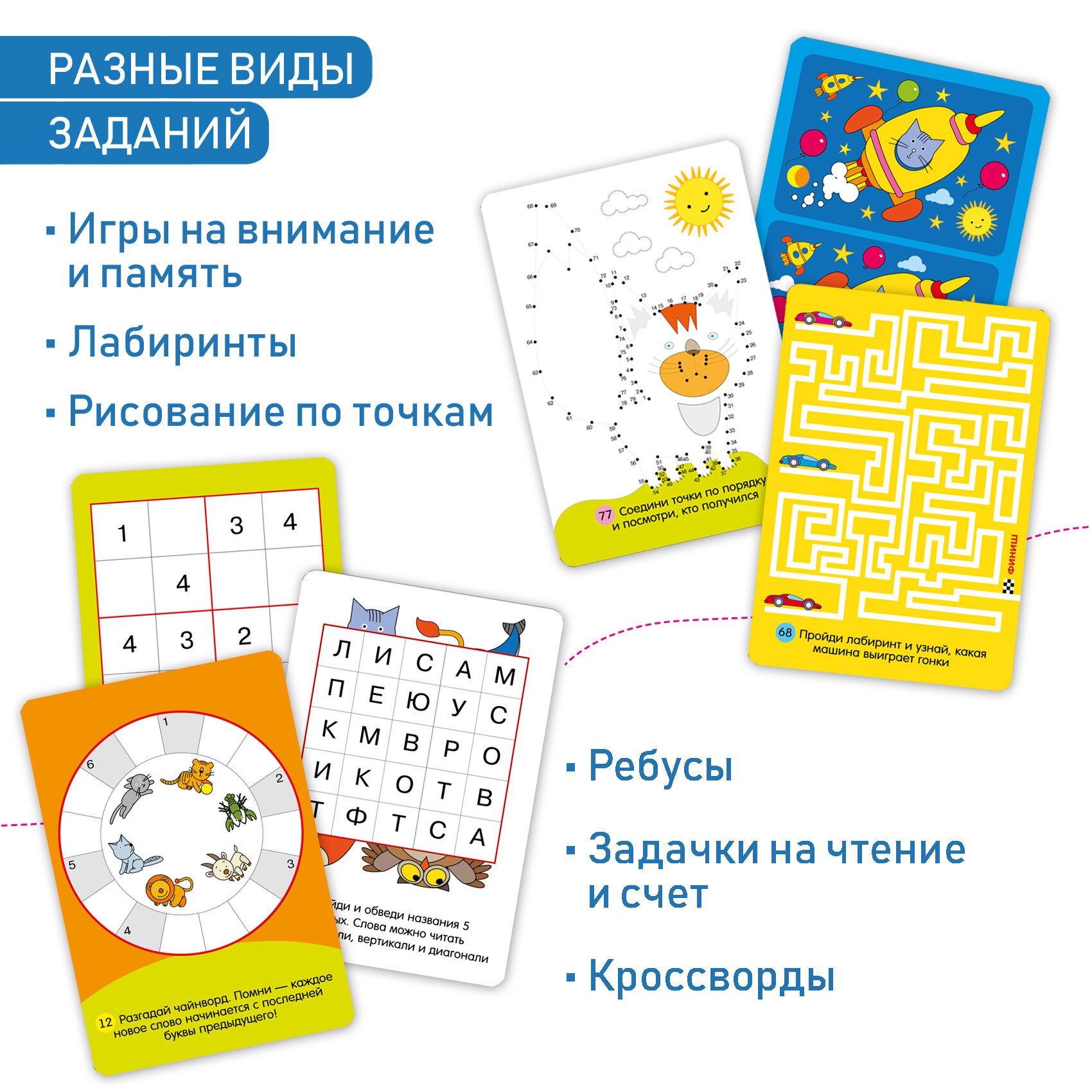 Сборник математических, логических, словесных и изобразительных игр-головоломок разного уровня сложности. В игре около 100 различных заданий: рисование по точкам, нахождение отличий на одинаковых картинках, лабиринты, игры на внимание и память, кроссворды, ребусы, задачки на счёт и чтение. Игра способствует развитию внимания, логического мышления и памяти, учит находить нестандартные решения. Можно играть и дома, и в путешествии.